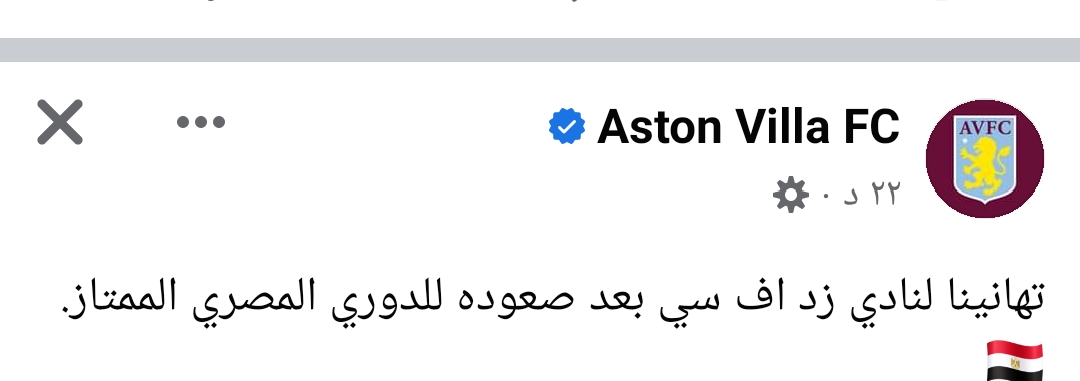 أستون فيلا الإنجليزي يهنئ زد بعد تأهله للدوري الممتاز