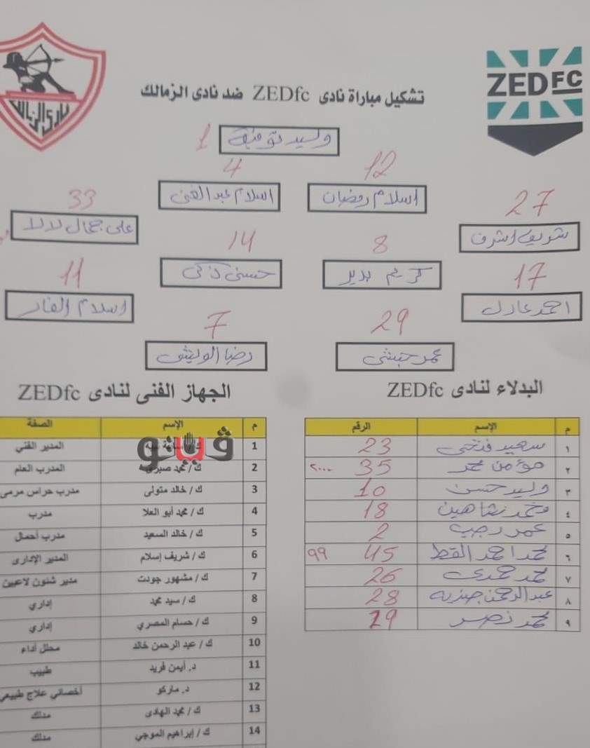 وخاض زد مباراة وادي دجلة بتشكيل مكون من: مزيكا، أبوالفتوح، محمد سمير، أحمد زكي، علي جمال، حجاج عويس، نادر رمضان، وليد عادل، أحمد ريفو، محمود صلاح، تشارلز.