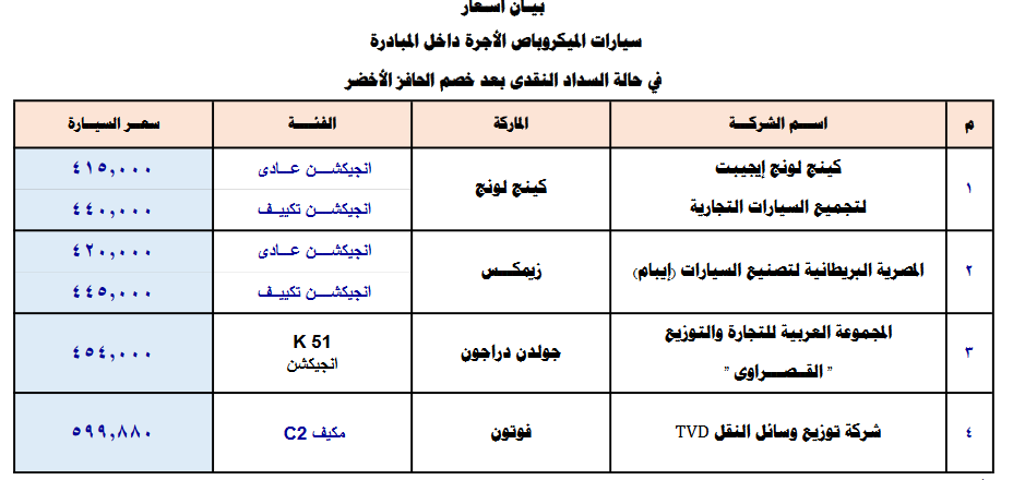مبادرة إحلال السيارات تكشف أسعار الميكروباص