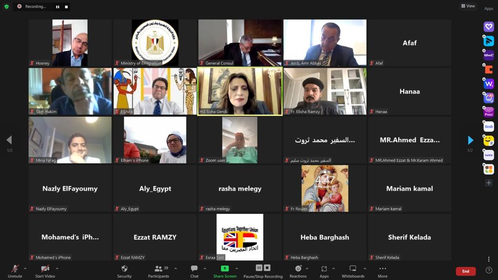 وزيرة الهجرة تعقد اجتماعا برموز الجالية المصرية في جمهورية أيرلندا واسكتلندا وأيرلندا الشمالية