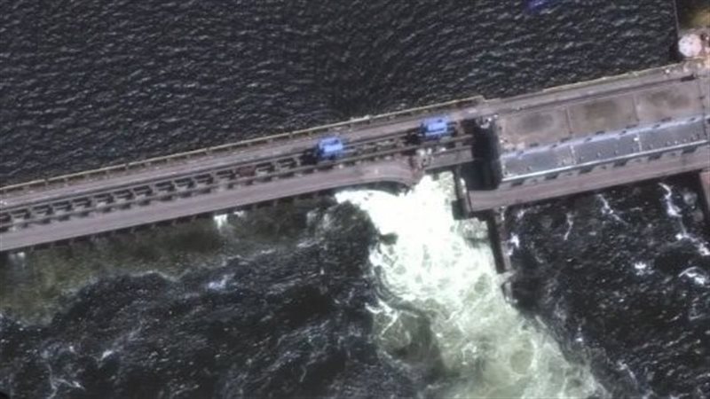 دمر سد نوفا كاخوفكا الضخم في المنطقة الخاضعة للسيطرة الروسية في جنوب أوكرانيا، ما أدى إلى تدفق المياه وفيضانها.