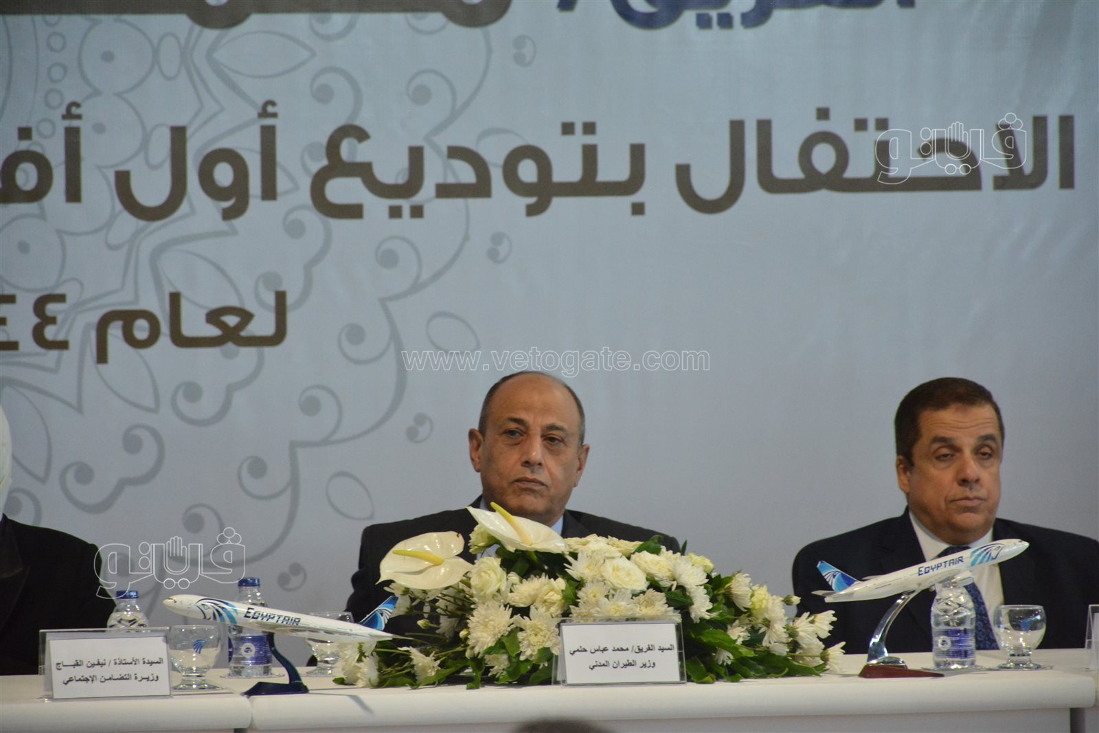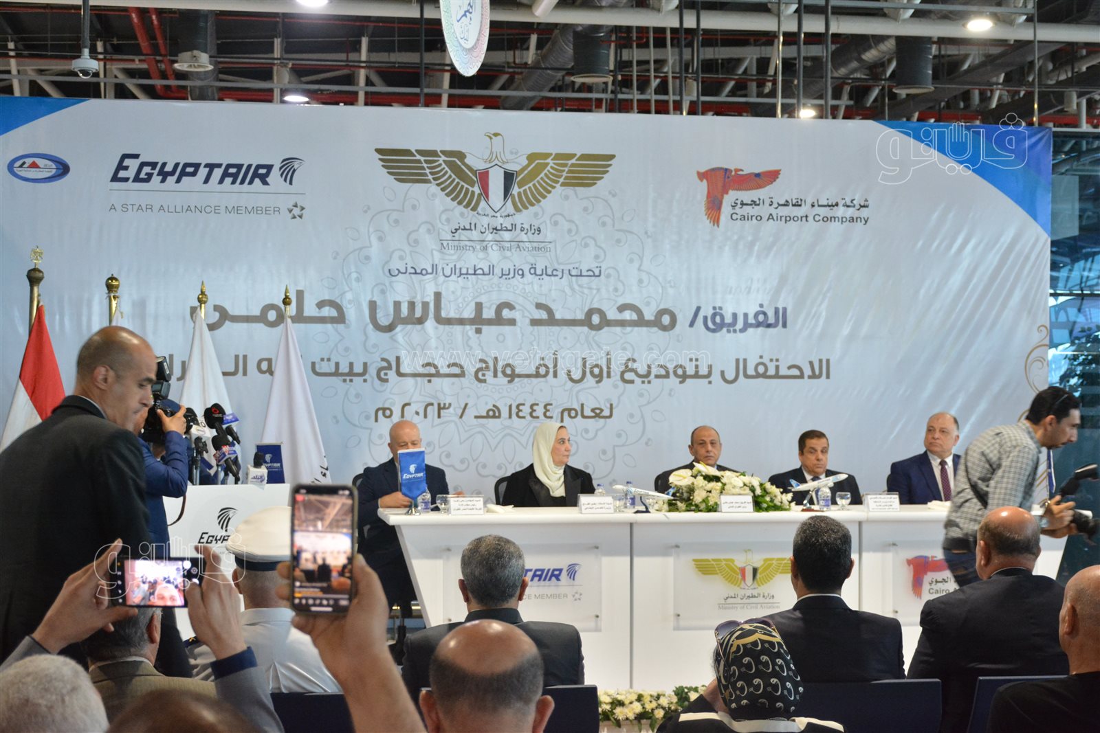 شهد الفريق محمد عباس حلمي وزير الطيران المدني والدكتورة نيفين القباج وزيرة التضامن احتفالية الشركة الوطنية مصر للطيران بتوديع أول أفواج حجاج بيت الله الحرام لهذا العام 1444هـ/2023 م من مبني الرحلات الموسمية بمطار القاهرة الدولي.