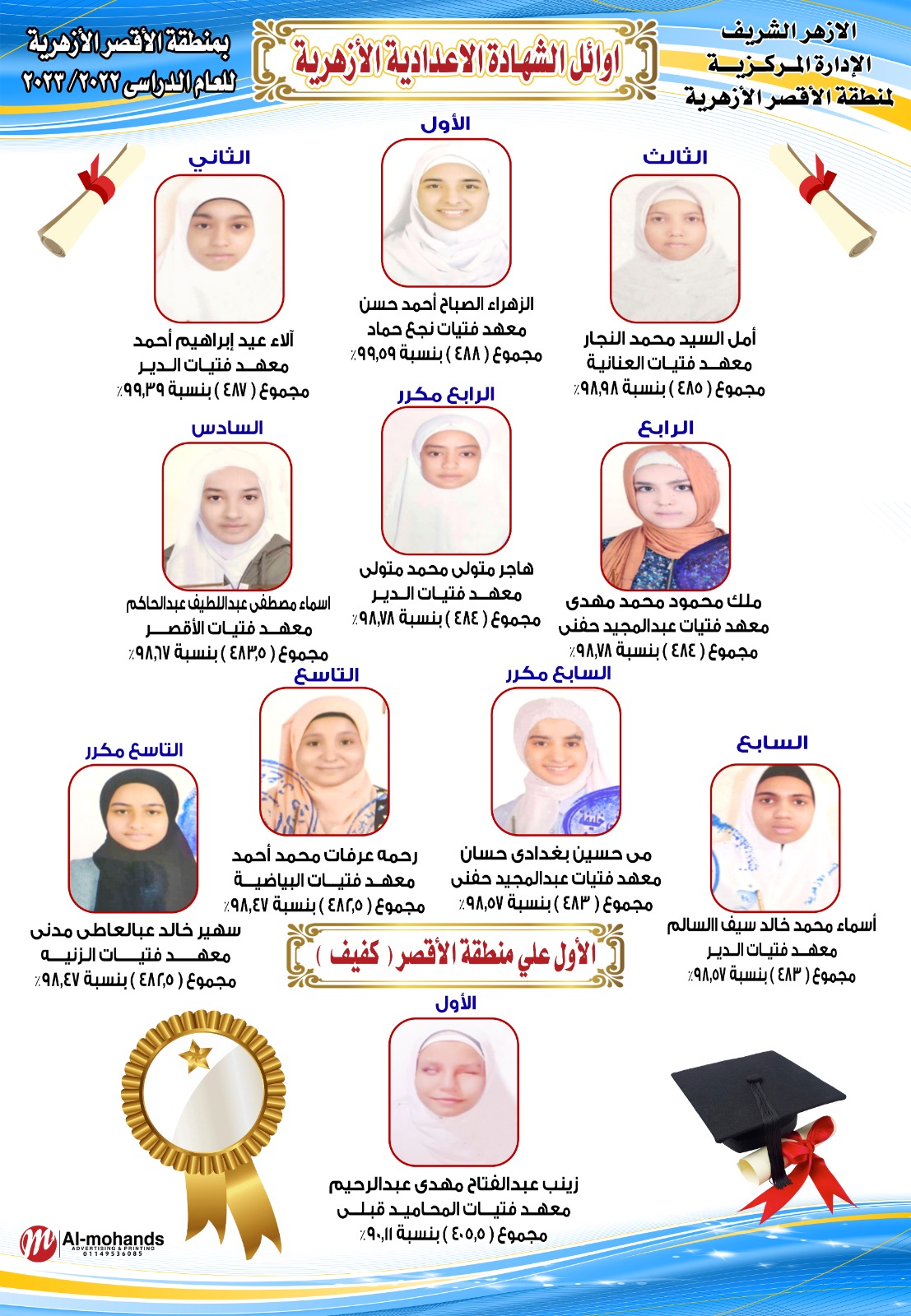 أوائل الشهادة الإعدادية والابتدائية الأزهرية بالأقصر