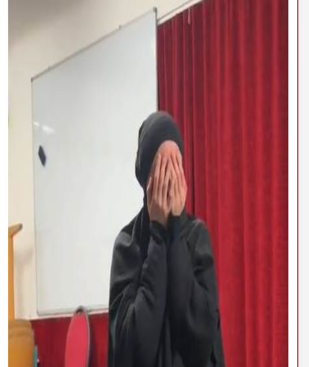 وعقب تلقيها الشهادتين، بكت بكاءً شديدًا من شدة الفرحة ونهضت مسرعة وابتسمت وسط فرحة كبيرة من المسلمين الحاضرين واحتضنتها فتاة أخرى، كانت قد شهدت على دخولها الإسلام، ويبدو عليها أنها أختها.
