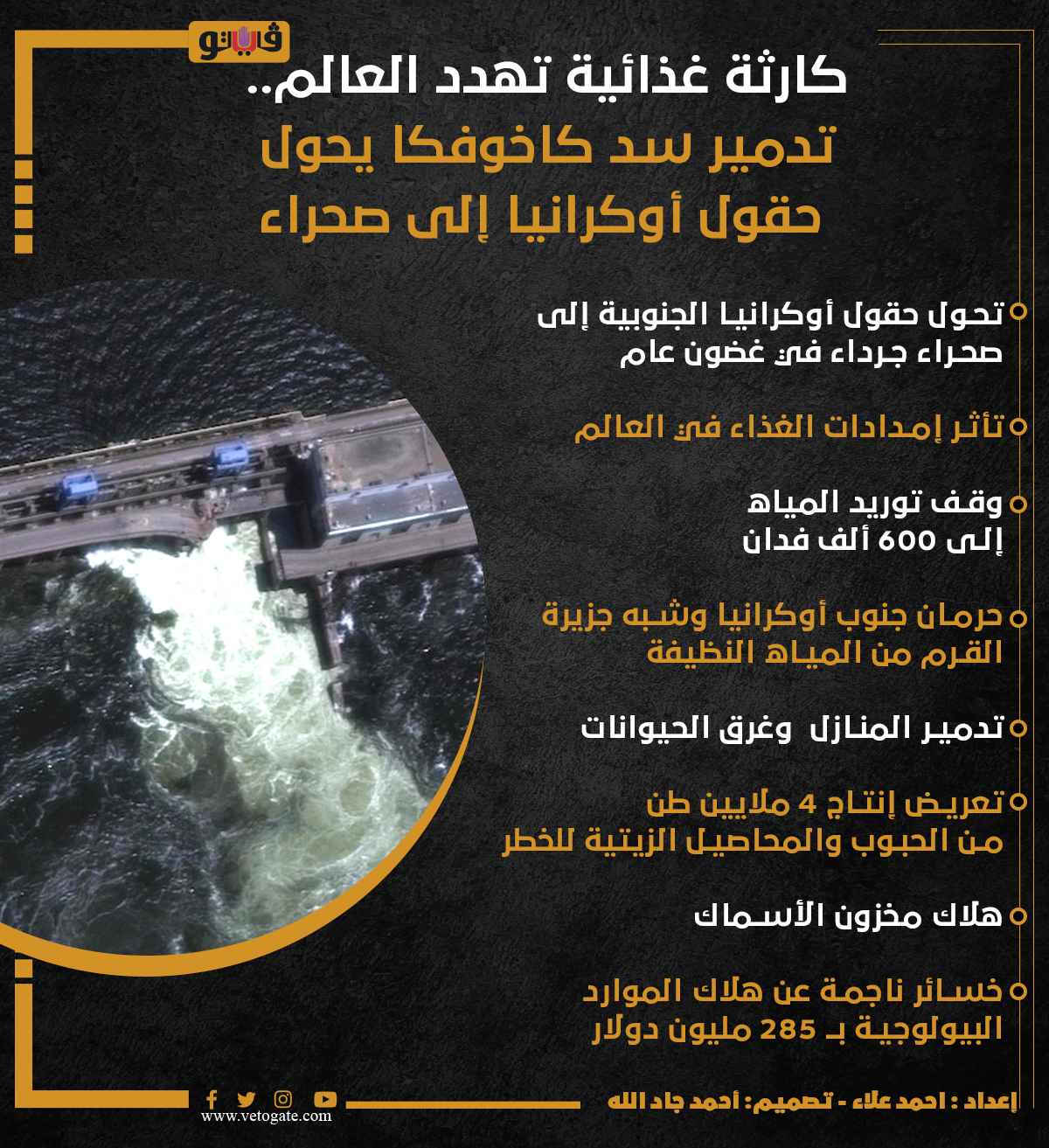 كارثة غذائية تهدد العالم.. تدمير سد كاخوفكا يحول حقول أوكرانيا إلى صحراء (انفوجراف) الثلاثاء 13/يونيو/2023 - 02:30 م 6/13/2023 2:30:36 PM سد نوفا كاخوفكا، فيتو احمد علاء شارك طباعة 18 حجم الخط شارك طباعة تدمير سد كاخوفكا أوكرانيا روسيا المحاصيل الزيتية الموارد البيولوجية