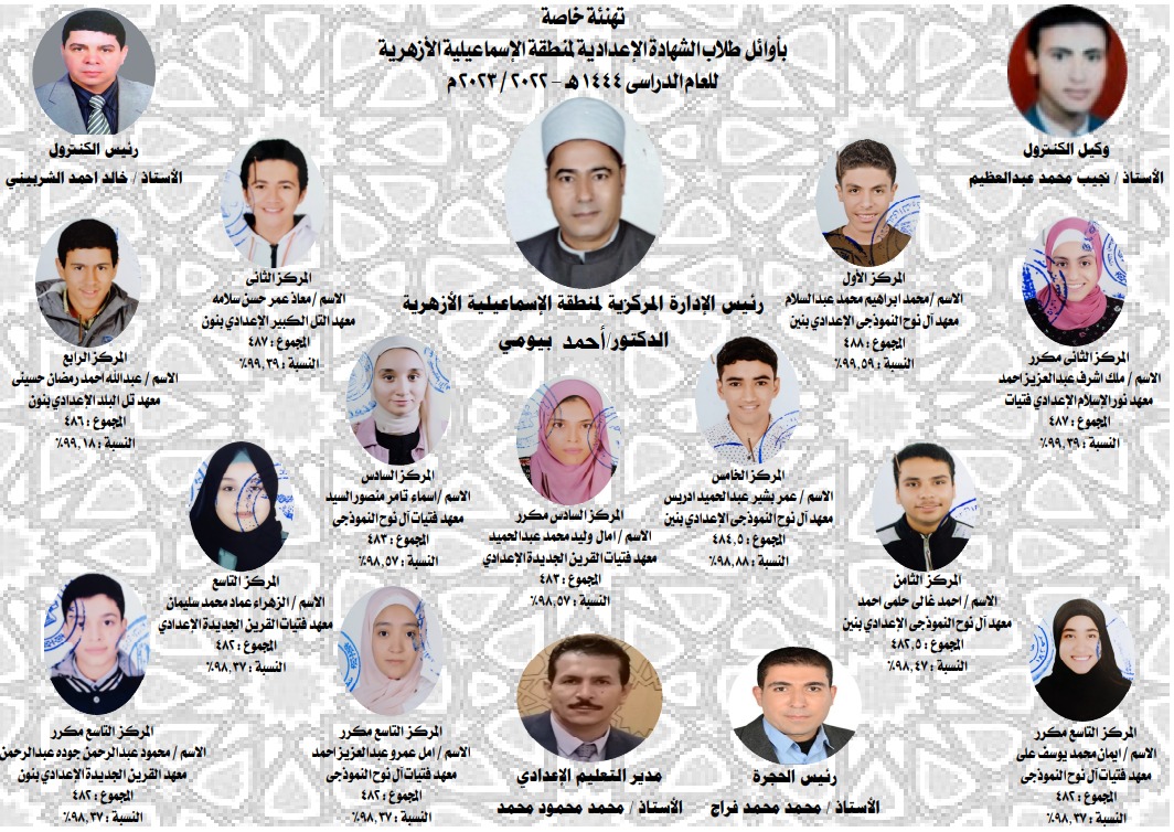 وأشار فضيلة الدكتور أحمد بيومى، المدير العام للمنطقة، أن عمليات التصحيح وعمليات المراجعة العددية والفنية والرصد فى الشهادتين الابتدائية والإعدادية، تمت بعناية تامة.