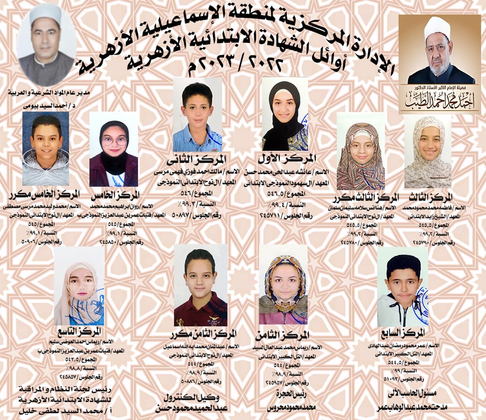 تعرف على أوائل الشهادتين الابتدائية والإعدادية في الإسماعيلية