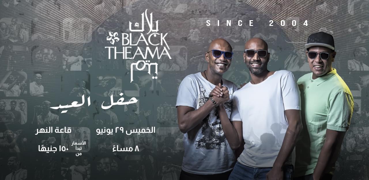 يحيي فريق بلاك تيما حفلا غنائيا مميزا في تمام الثامنة من مساء يوم الخميس 29 يونيو الجاري، والذي يوافق ثاني أيام عيد الأضحى المبارك فلكيا، وذلك على مسرح قاعة النهر بساقية الصاوي بالزمالك.