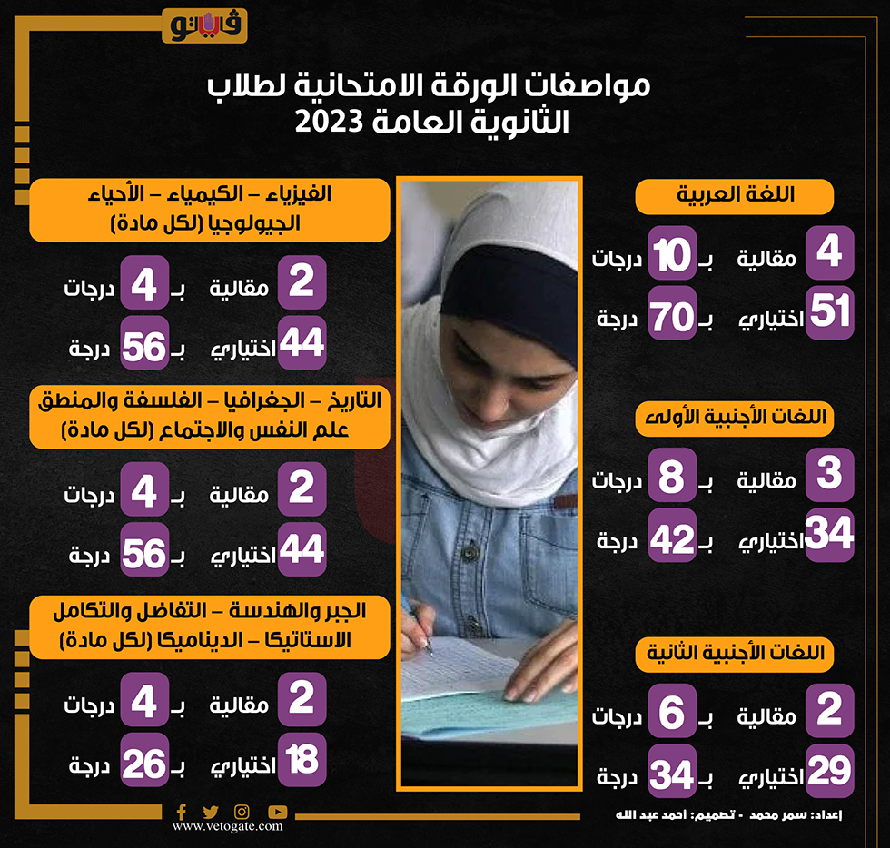 مواصفات الورقة الامتحانية لطلاب الثانوية العامة 2023 (انفوجراف) الأحد 11/يونيو/2023 - 02:26 م 6/11/2023 2:26:20 PM امتحانات الثانوية العامة 2023 سمر محمد شارك طباعة 18 حجم الخط شارك طباعة الثانوية العامة 2023 الثانوية العامة امتحانات الثانوية العامة 2023