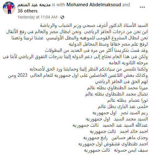 نحن ابطال المشروع القومي للموهبة والبطل الأوليمبي عشنا تربينا وتعبنا لرفع علم مصر خفاقا وسط المحافل الدولية