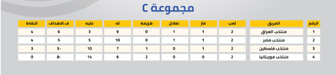المجموعة الثالثة: مصر - موريتانيا - فلسطين - العراق.