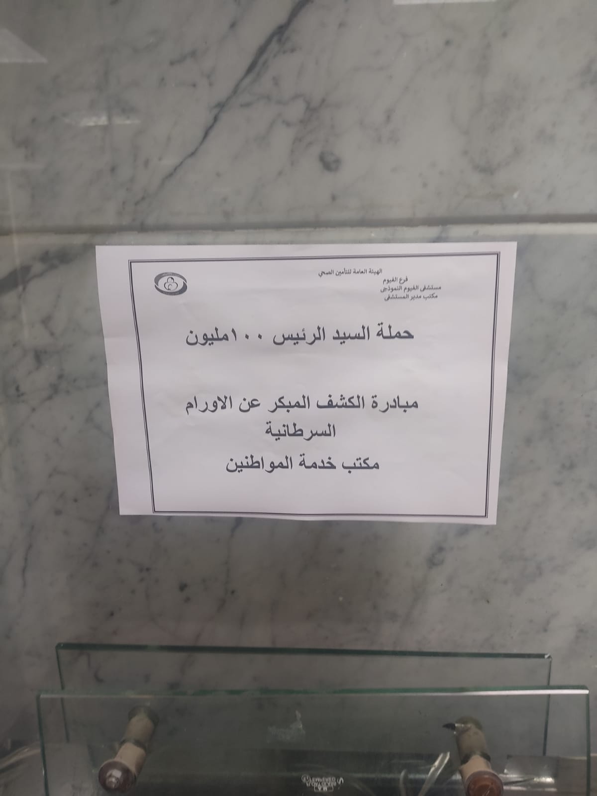 أعلنت وزارة الصحة والسكان، تقديم خدمات مبادرة رئيس الجمهورية للكشف المبكر عن الإصابة بالأورام السرطانية لـ 731 مواطنا، بالإضافة إدخال بيانات 5307 مواطنين في الاستبيان الإلكتروني التابع للمبادرة لتيسير عملية التشخيص والعلاج بالوحدات الصحية.
