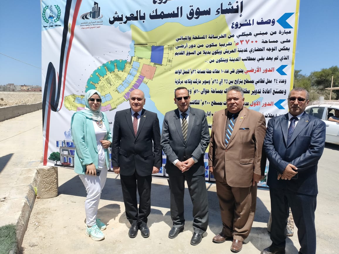 قام اللواء دكتور محمد عبد الفضيل شوشة محافظ شمال سيناء، يرافقه اللواء وائل مصطفى حسن، رئيس جهاز تعمير سيناء، بوضع حجر الأساس لمشروع سوق السمك بالعريش، في حضور اللواء أحمد مدحت نائب رئيس جهاز تعمير سيناء والمهندس ناجي إبراهيم محمد رئيس منطقة تعمير سيناء، اللواء مصطفى محمد مصطفى، رئيس الإدارة المركزية لشئون مكتب المحافظ، المهندسة مروة نصير، المصمم المعماري للمشروع.