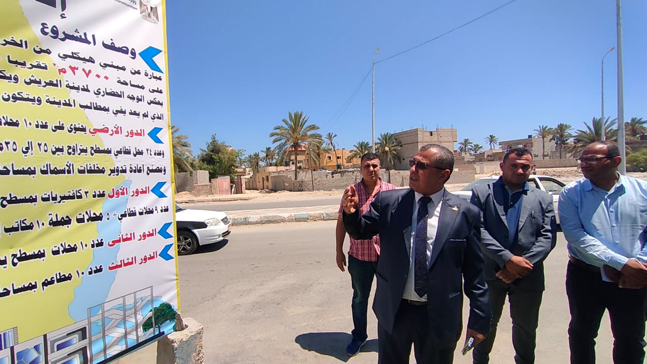 وقام محافظ شمال سيناء يرافقه رئيس جهاز تعمير سيناء، عقب وضع حجر الأساس لمشروع سوق السمك بمدينه العريش، بتفقد عدد من المشروعات التي ينفذها الجهاز في محافظه شمال سيناء، من بينها مشروع انشاء ٦ عمارات في حي الريسة كبديل لتوسعات ميناء العريش البحري، و٦ عمارات في ضاحية السلام بالعريش، كبديل للعمارات الآيلة للسقوط، واحلال وتجديد ١٠ عمارات في حي المساعيد بالعريش.