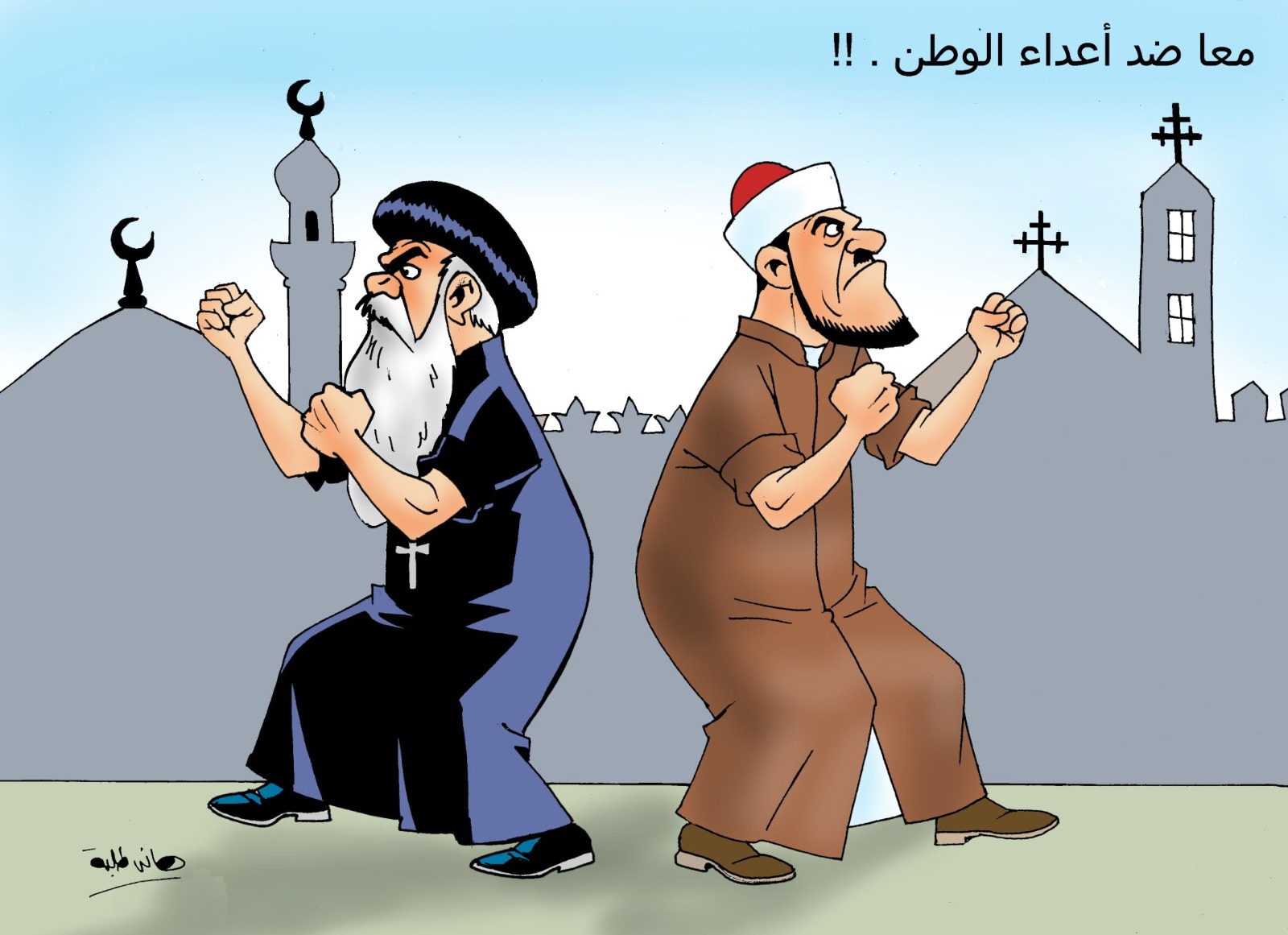 مشيرا إلى أن المحور الثاني في الملتقى يتناول موضوع الوحدة الوطنية ويعلي قيم التآخى والتسامح والعلاقات الودية التاريخية والترابط بين المسلمين والمسيحيين في مواجهة أعداء الوطن ومثيري الفتن ومن يتربصون بأوطاننا خاصة في هذه الفترة، لافتا إلى أن الكاريكاتيرات جاءت بأفكار جميلة تعضد الوحدة الوطنية وتظهر مدى التماسك في مواجهة أعداء الداخل والخارج من خلال استخدام رمزي الهلال والصليب وتوظيفهما في أشكال جمالية بديعة.