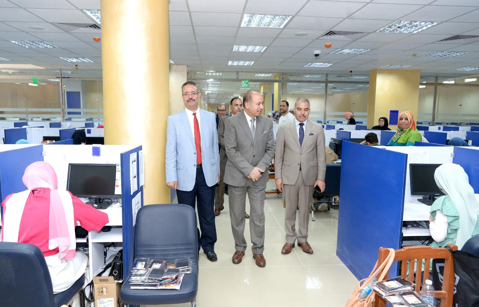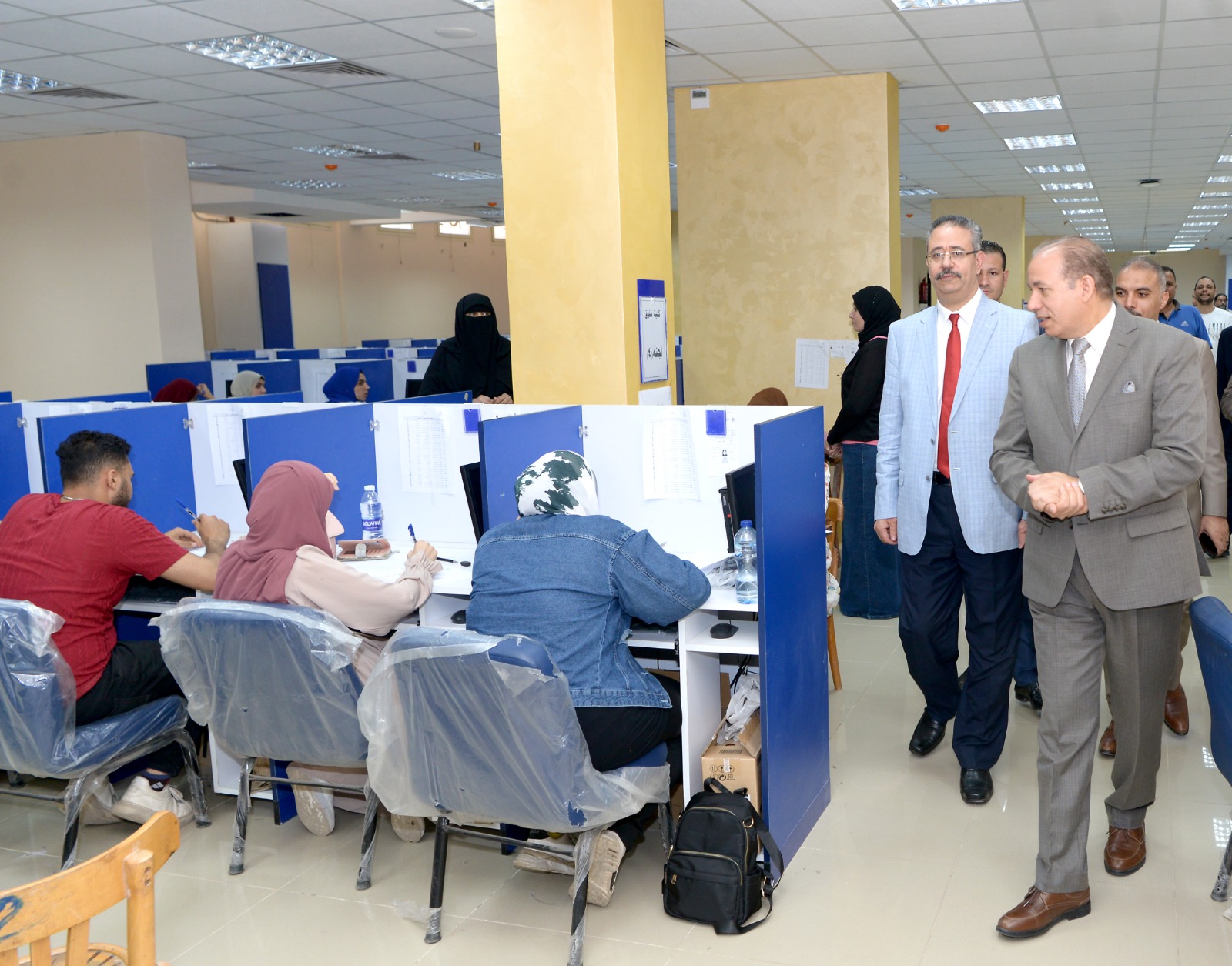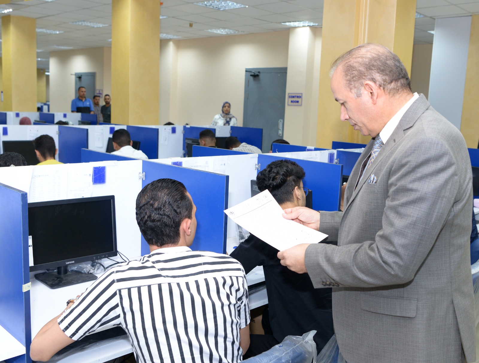 وقد أشاد بحسن سير العملية الامتحانية وتوافر الجو الملائم للطلاب لتأدية الإمتحانات، مع تواجد جميع مديرى البرامج ورؤساء الكنترولات والملاحظين داخل اللجان.