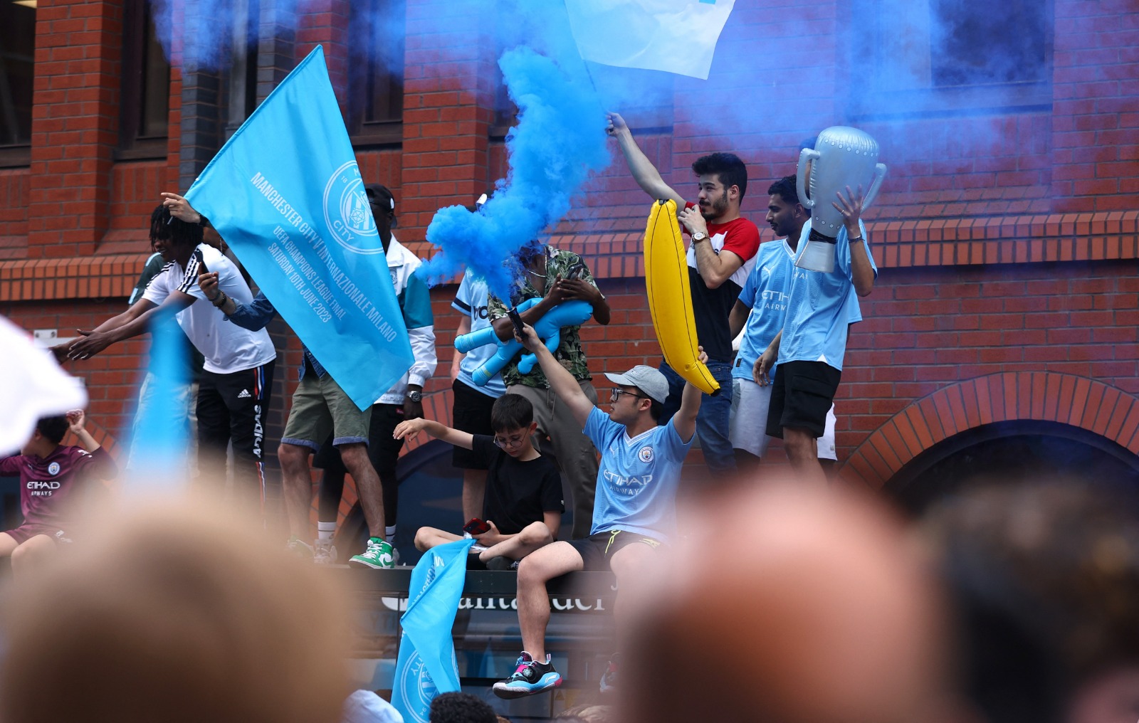 بث مباشر لاحتفالات جماهير مانشستر سيتي بالثلاثية التاريخية