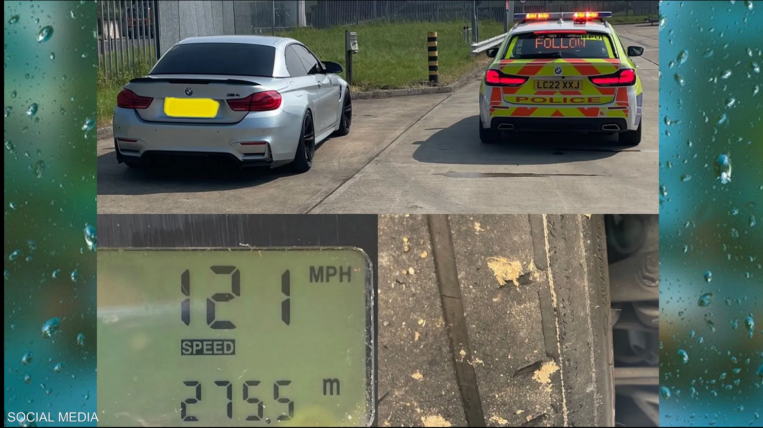 وإلى جانب السرعة الكبيرة، قالت الشرطة إن السائق كان يقود المركبة بإطارات كان أحدها يحتك بسلك معدني مكشوف، وهو ما عرضه لخطر كبير.