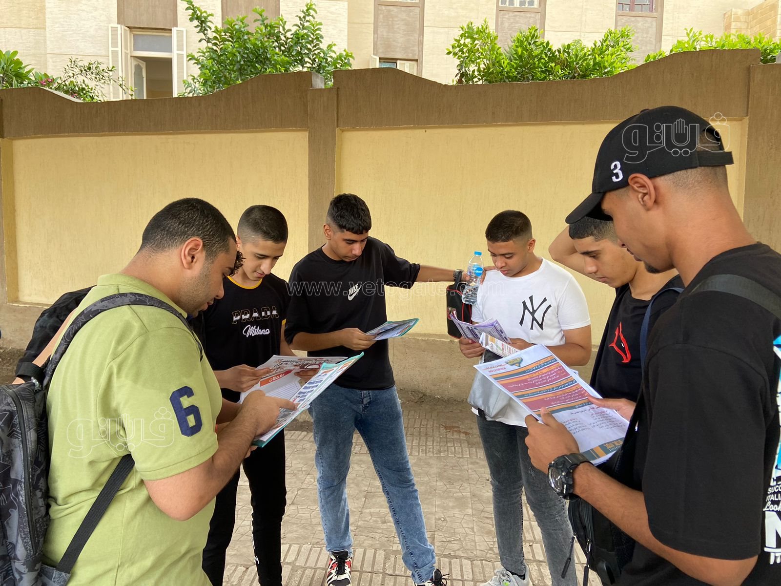 وحرص طلاب الثانوية العامة 2023 علي المراجعة النهائية أمام المدرسة قبل الدخول للجنة لأداء امتحان الاقتصاد.