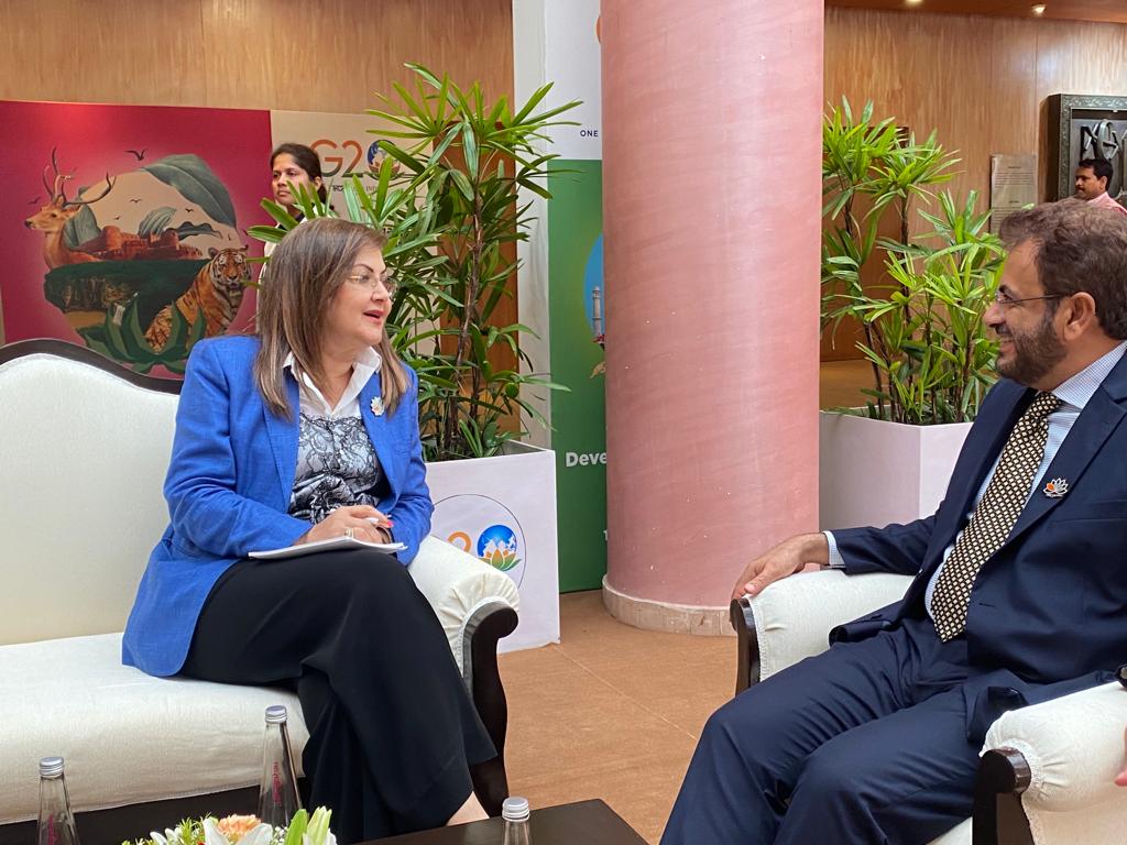 التقت د.هالة السعيد وزيرة التخطيط والتنمية الاقتصادية بالدكتور سعيد الصقري وزير الاقتصاد العماني، وذلك على هامش فعاليات اجتماع وزراء التنمية ضمن أعمال مجموعة العشرين بالهند في الفترة بين 11 إلى 13 يونيو الجاري. حضر اللقاء د.منى عصام مساعد وزيرة التخطيط لشئون التنمية المستدامة.
