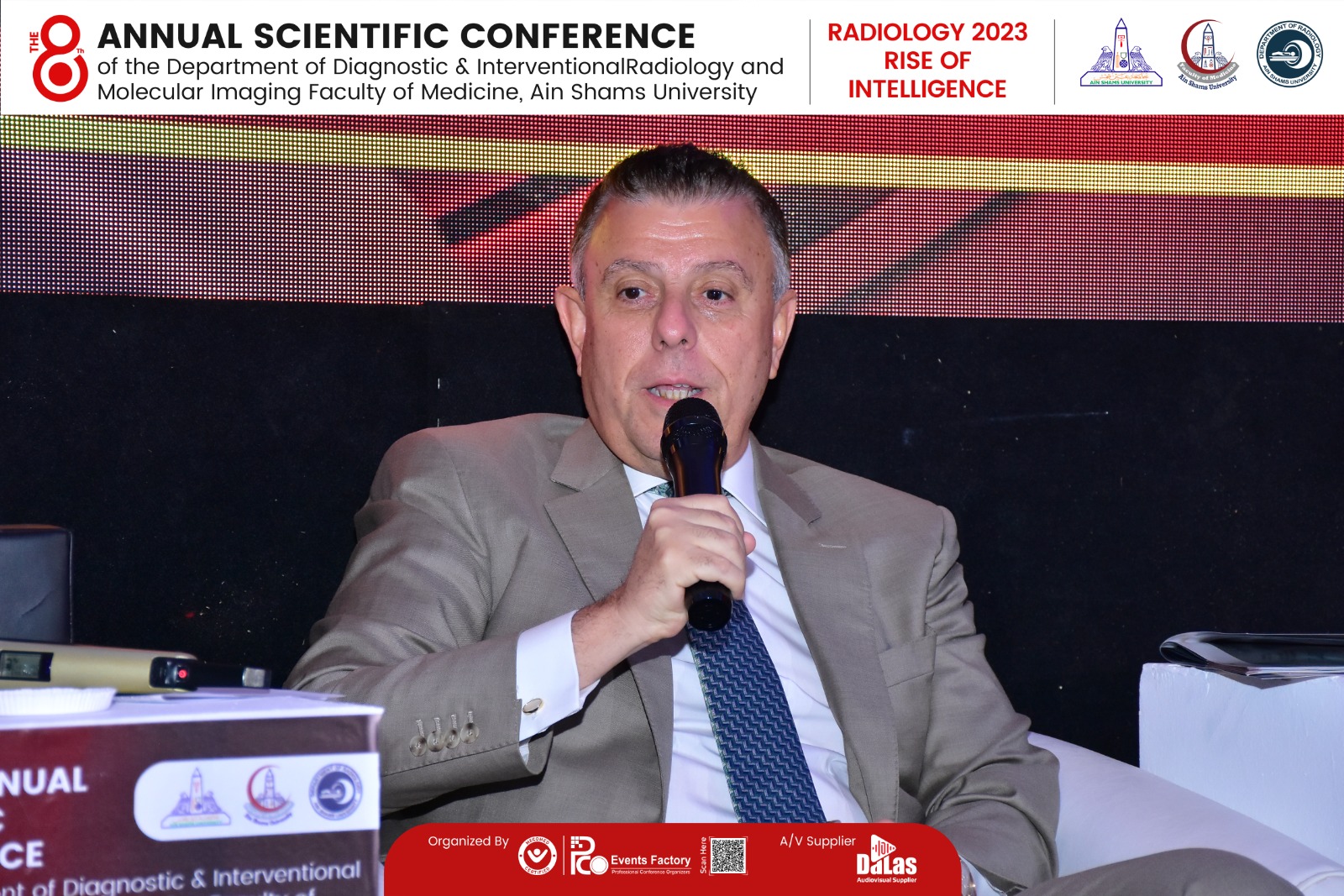 أشار الدكتور محمد أبو الهدى أستاذ الأشعة التشخيصية وامين صندوق الجمعية المصرية للأشعة والطب النووي ورئيس المؤتمر إلى أن المؤتمر يناقش أحدث التكنولوچيا والوسائل العلمية الحديثة في المجال ويركز المحور الأساسي للمؤتمر هذا العام علي الذكاء الاصطناعي والدور الكبير الذي يلعبه داخل مجال الأشعة والذي يتطور بصوره مطردة وعرض مجهودات القسم للحاق بهذا الركب، إلي جانب عرض اخر ما تم داخل القسم من ابحاث وانشطه تهدف لخدمة المرضي.