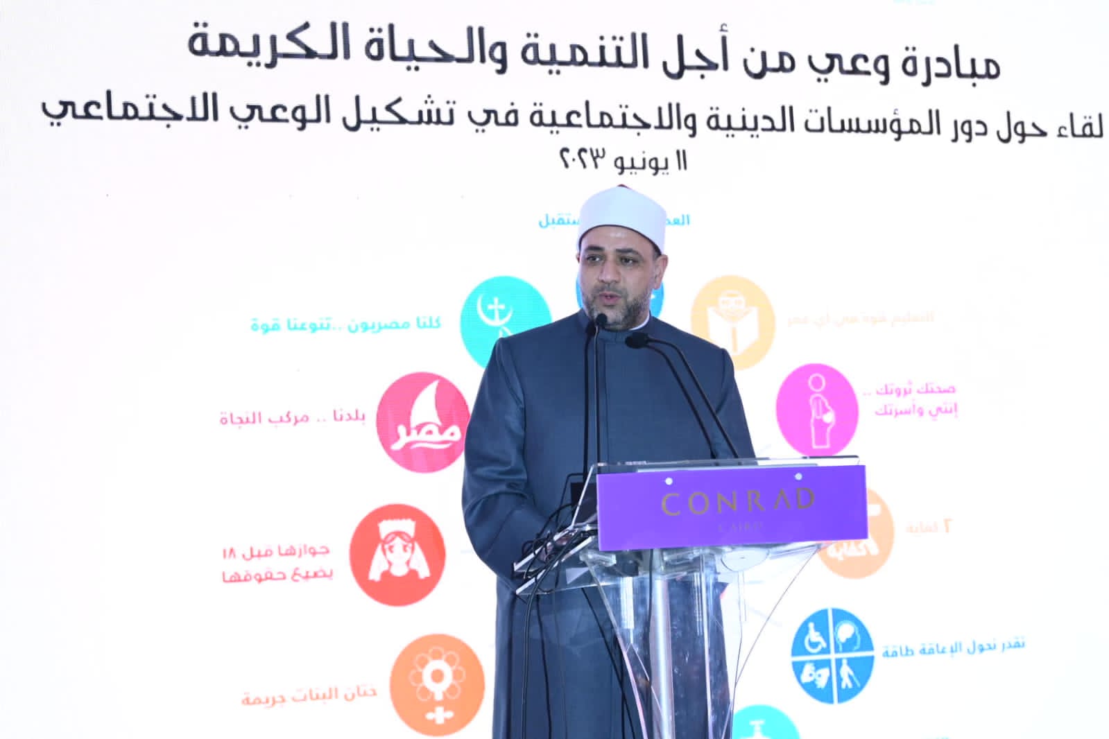 وشاركت المؤسسات الدينية بتقديم الآراء الدينية الوسطية والمستنيرة، كما قدمت المؤسسات الدينية نخبة متميزة من أهم انتاجها الفكري في مجال قضايا الوعي الاجتماعي، حيث شارك الأزهر الشريف 5 كتب حول قضايا الأسرة ومواجهة التطرف والعلاقة بين الأديان، وقدمت دار الإفتاء 8 كتب حول قضايا الأسرة ومواجهة التطرف والمواطنة، وشاركت وزارة الاوقاف بعدد 10 كتب حول تنظيم الأسرة والسكان ومواجهة التطرف.