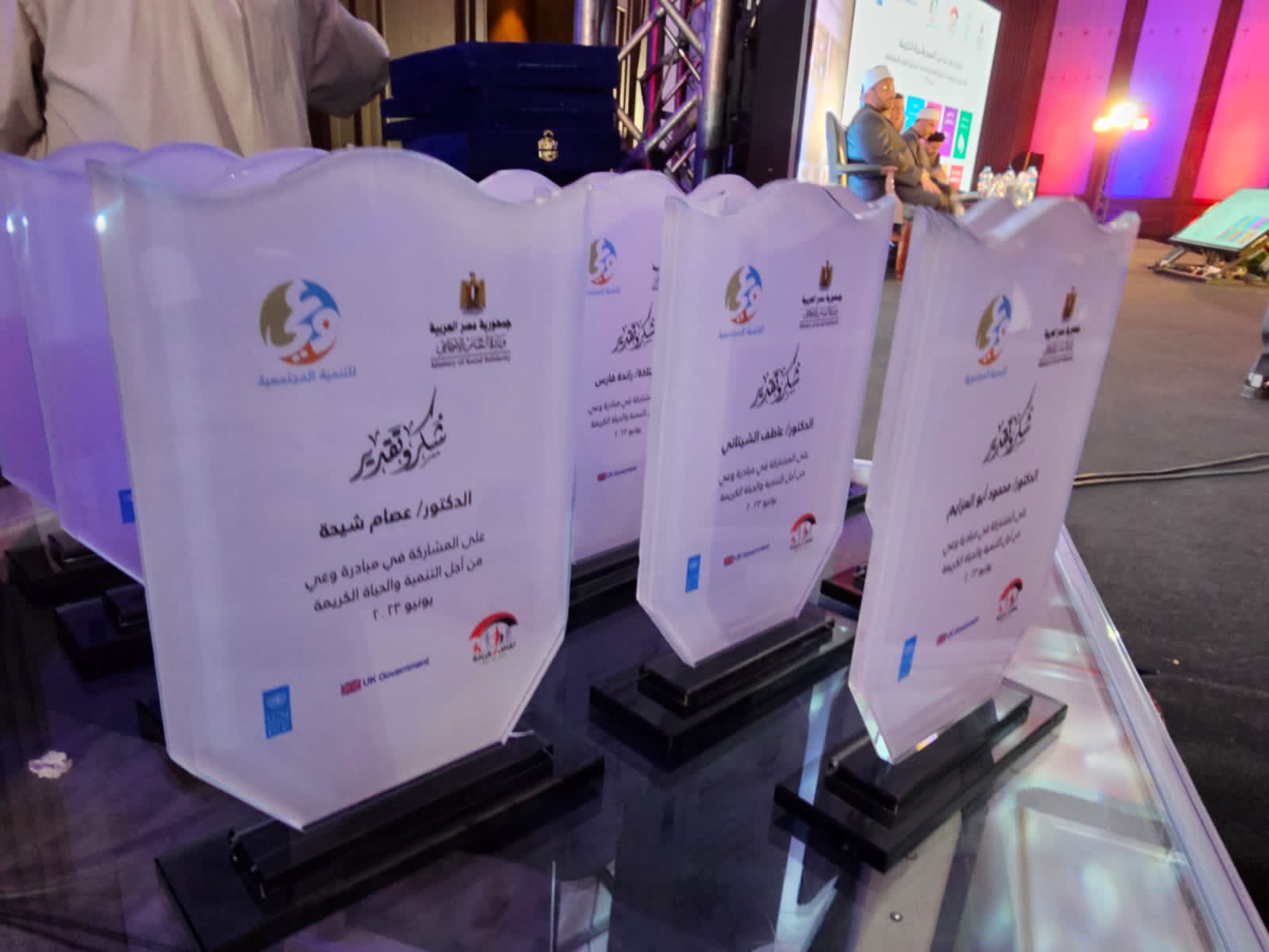 وفي نهاية اللقاء كرم مساعد وزيرة التضامن الاجتماعي لشئون مؤسسات المجتمع الأهلي قيادات المؤسسات الدينية التي دعمت هذه المبادرة، والأساتذة والخبراء الذين شاركوا في تقديم البرنامج التدريبي وإنتاج الرسائل المتكاملة للوعي الاجتماعي، وعلماء الدين الذين شاركوا بفاعلية في حلقات العمل بمنحهم دروع وشهادات تكريم.