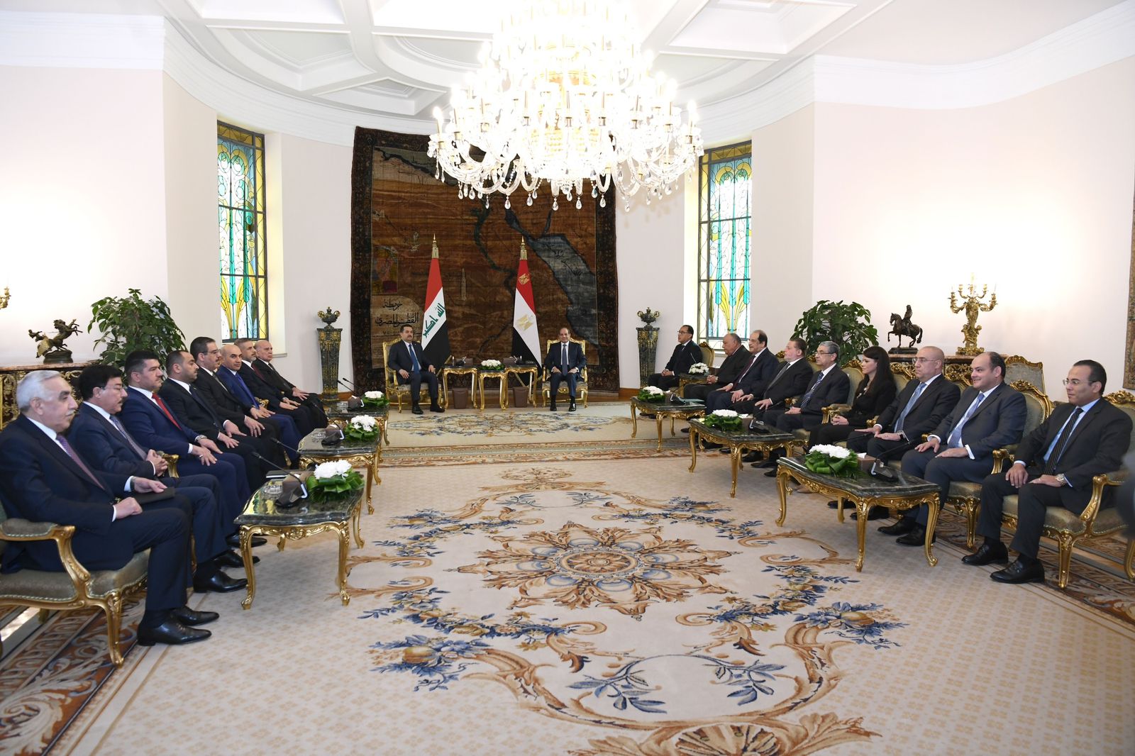 استقبل الرئيس عبد الفتاح السيسي، بقصر الاتحادية، "محمد شياع السوداني"، رئيس وزراء العراق، الذي يزور مصر على رأس وفد حكومي رفيع المستوى، يضم نائبي رئيس الوزراء وزيرَيْ الخارجية والتخطيط، ووزراء الإسكان والتجارة والكهرباء، ومحافظ البنك المركزي العراقي، للمشاركة في أعمال اللجنة العليا المصرية العراقية المشتركة.