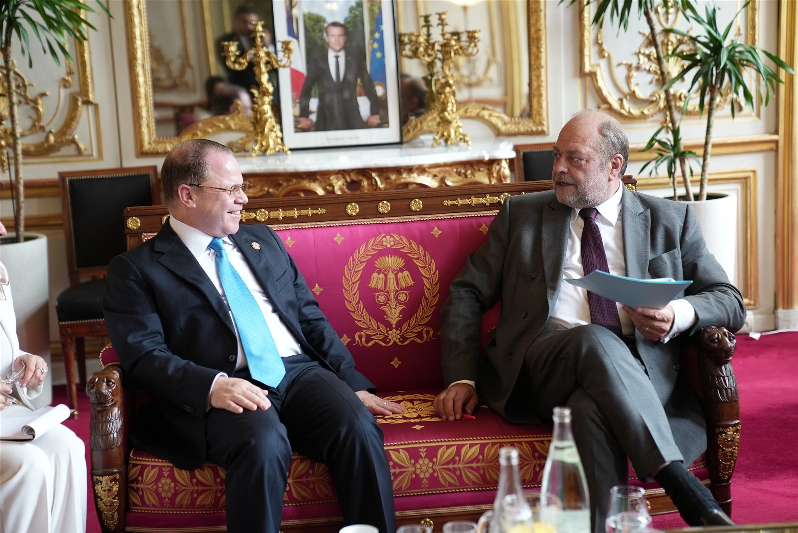 التقى النائب العام المستشار حماده الصاوي والوفد المرافق له خلال زيارته الرسمية للعاصمة الفرنسية باريس بأبرز القيادات القضائية هناك، وهم إيريك ديبون موريتي وزير العدل الفرنسي، وريمي هايتز النائب العام لدى محكمة استئناف باريس، ولور بيكيو المدعي العام لباريس، وذلك بحضور السفير علاء يوسف سفير جمهورية مصر العربية لدى فرنسا، في إطار تعزيز التعاون القضائي الوثيق رفيع المستوى بين الدولتين، حيث أعرب الطرفان خلال تلك اللقاءات عن سعادتهما بانعقادها، والتي تأتي تعبيرًا عن عمق العلاقات بينهما على المستوى القضائي بين البلدين.
