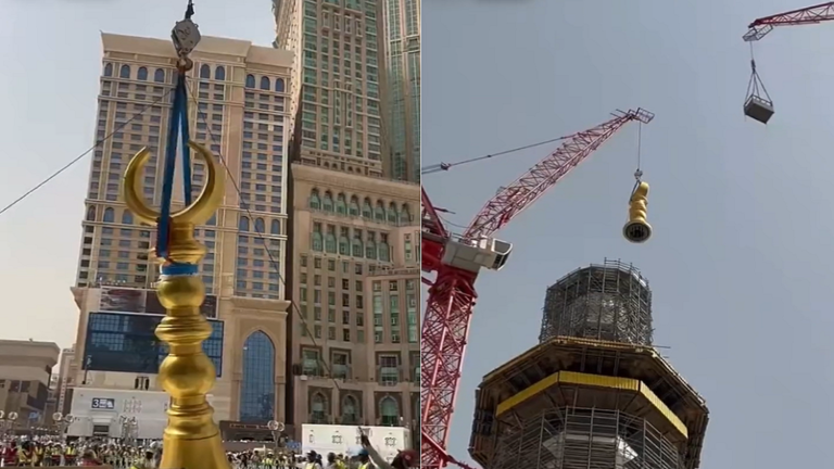 تدادول نشطاء عبر مواقع التواصل الاجتماعي مقطعا مصورا يرصد تركيب هلال منارة باب الملك عبدالعزيز بـ المسجد الحرام.