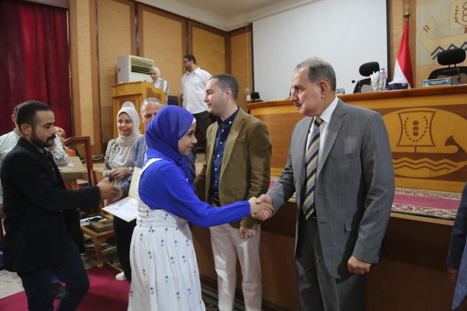 كرم اللواء جمال نور الدين، محافظ كفر الشيخ، وعمرو البشبيشي، نائب محافظ كفر الشيخ، أوائل الشهادة الإعدادية، خلال اللقاء الجماهيري الذي عقد بديوان عام محافظة كفر الشيخ، بحضور اللواء عبد الغفار الديب، السكرتير العام المساعد، ومحمد عبد الله، وكيل وزارة التربية والتعليم بكفر الشيخ، وحضور الطلاب وأسرهم.