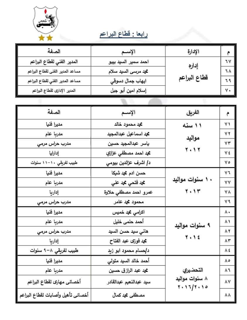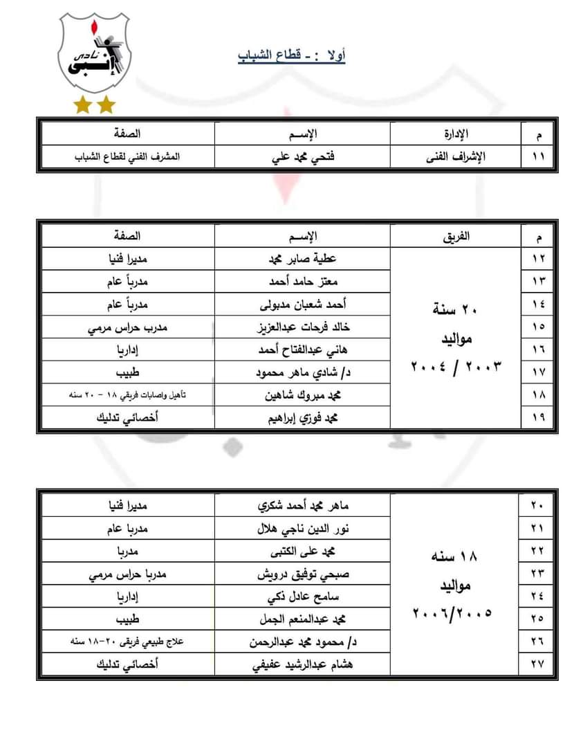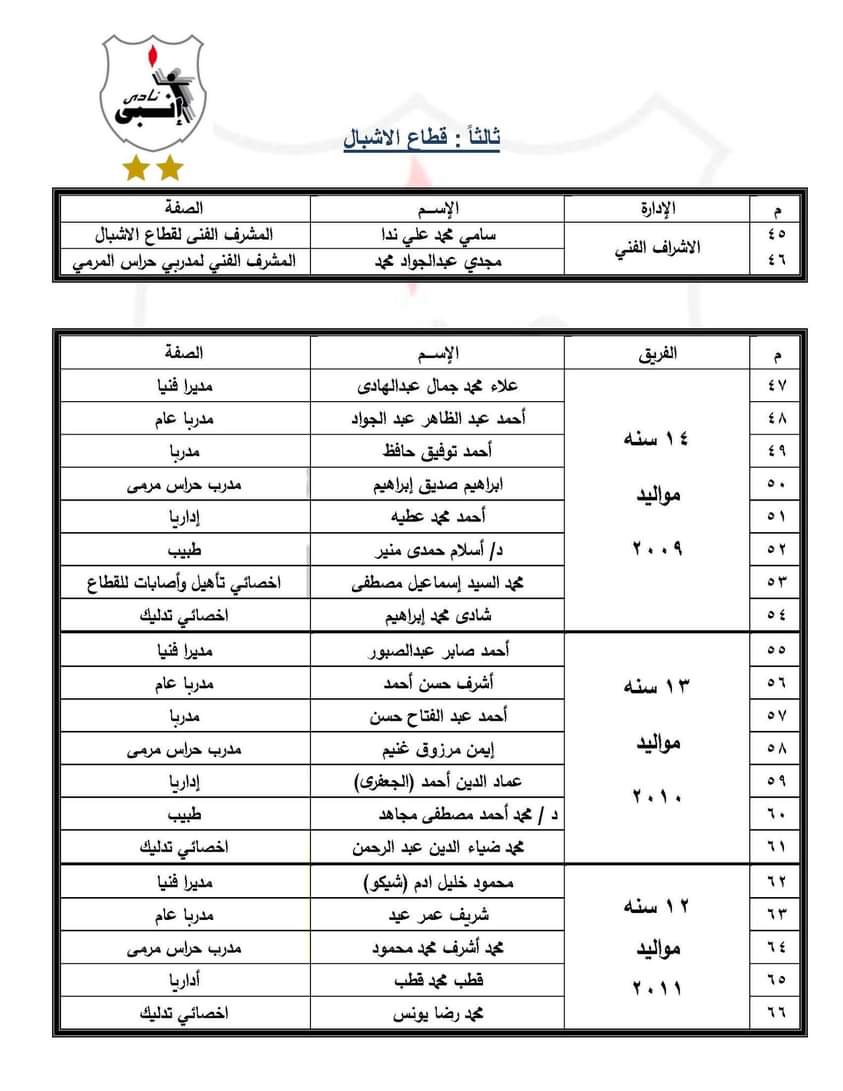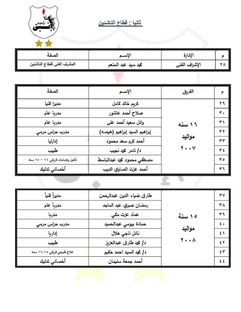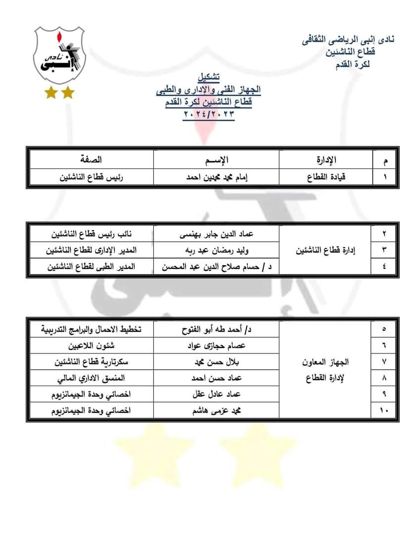 تشكيل الأجهزة الفنية والإدارية لقطاع الناشئين بنادي إنبى 2023-2024