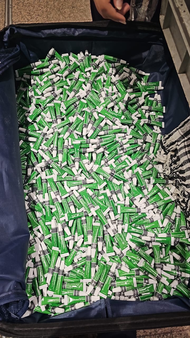 أحبطت سلطات جمارك مطار القاهرة الدولي برئاسة الدكتور ماجد موسى رئيس الإدارة المركزية، محاولة راكبة آسيوية تهريب كمية كبيرة من مراهم العين، كما تم ضبط راكب أجنبي بحوزته كمية كبيرة من العبوات بداخلها مخدرات.