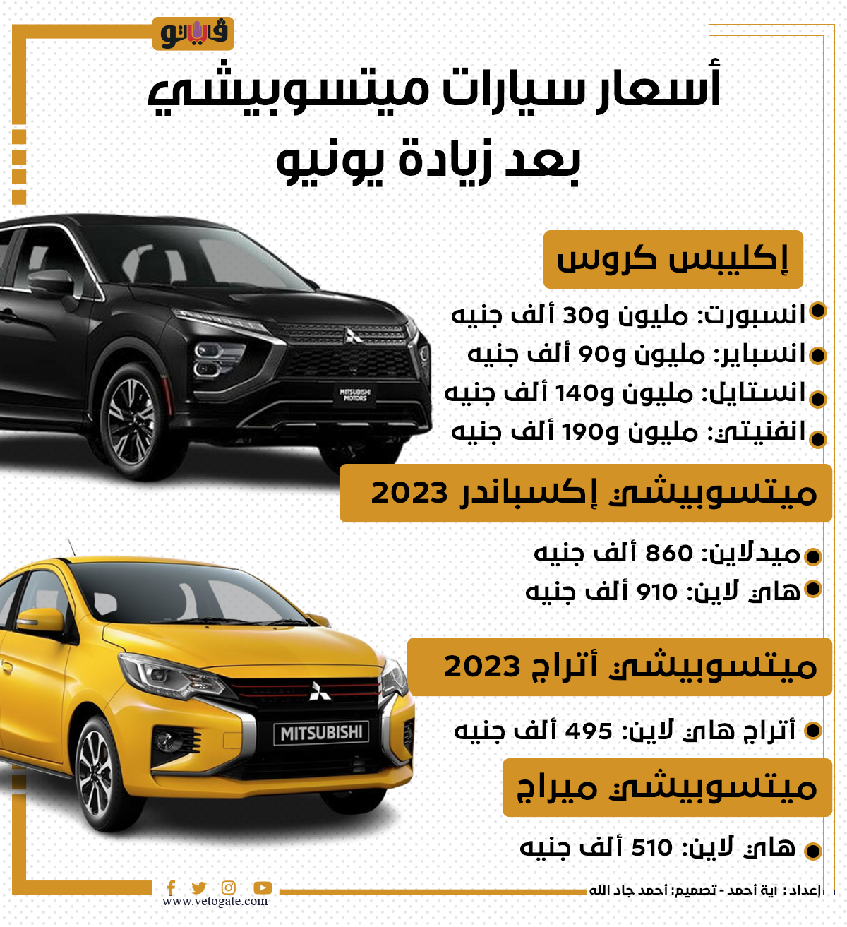أسعار سيارات ميتسوبيشي بعد زيادة يونيو (إنفوجراف) الثلاثاء 20/يونيو/2023 - 11:38 ص 6/20/2023 11:38:34 AM أسعار سيارات ميتسوبيشي، فيتو آية أحمد شارك طباعة 18 حجم الخط شارك طباعة اسعار ميتسوبيشي إكسباندر اسعار ميتسوبيشي اكليبس ميتسوبيشي أتراج 2023