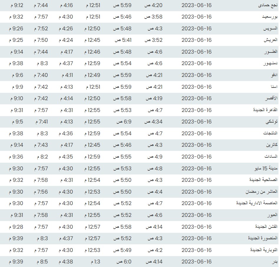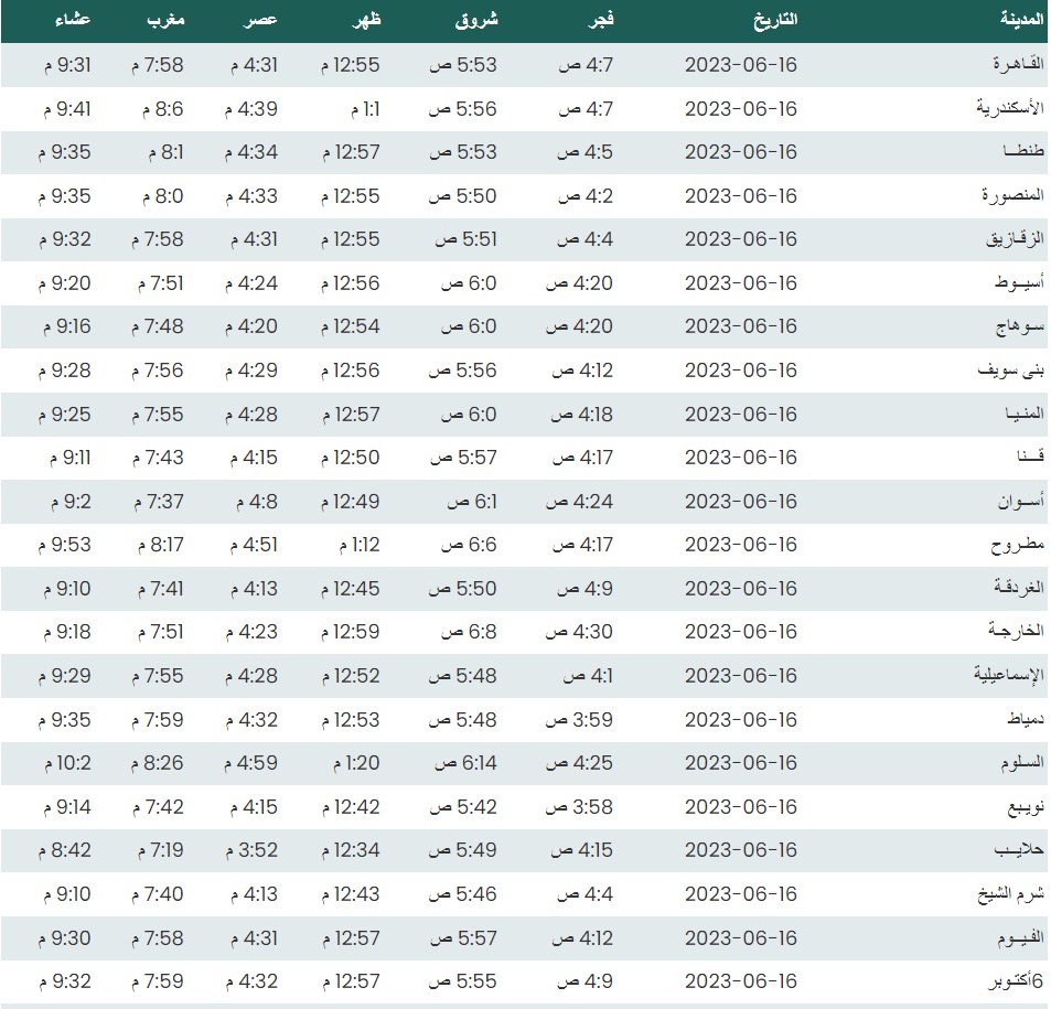مواقيت الصلاة اليوم بتوقيت القاهرة