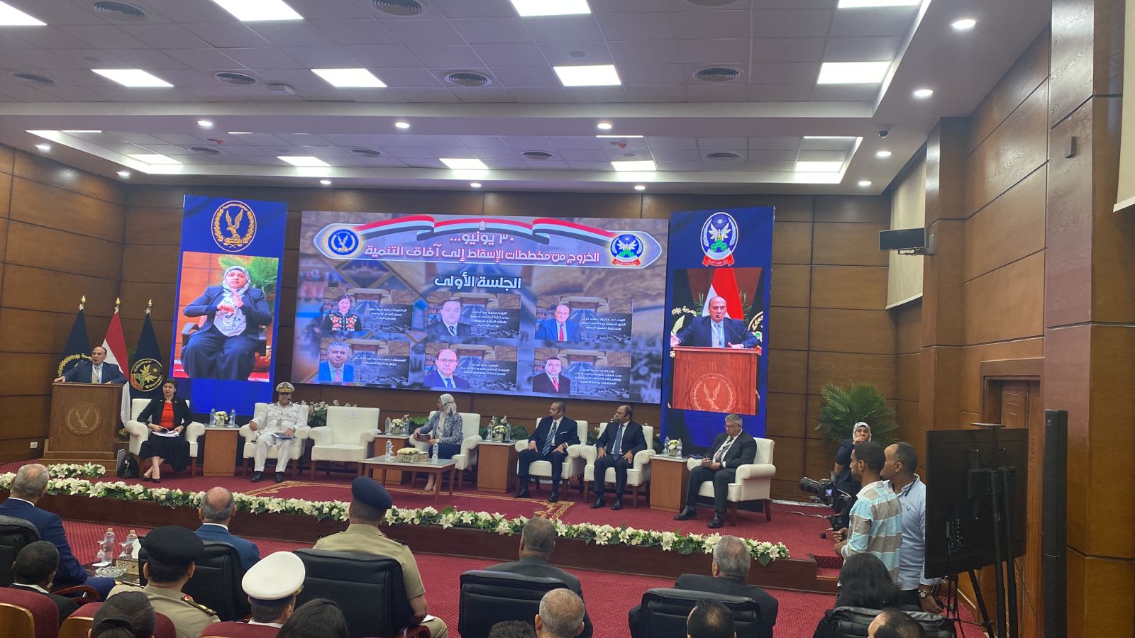 كما تشهد وقائع الجلسة الثانية بعنوان "دور مؤسسات وأجهزة الدولة في الحفاظ على الاستقرار وتحقيق التنمية"، المتحدثين فيها كلا من اللواء دكتور أشرف محمد محمد اللوزي، الدكتور مهندس عبد الخالق عبد الرحمن مساعد وزير الإسكان والمرافق والمجتمعات العمرانية للشئون الفنية، الدكتور مهندس أحمد محمد عبد الحميد رئيس قطاع التخطيط الاستراتيجي ومتابعة الأداء بوزارة الكهرباء، هويدا عدلي رومان بطرس أستاذ العلوم السياسية بالمركز القومي للبحوث الإجتماعية والجنائية، الدكتور عصام رمضان الروبي من علماء الأزهر الشريف، الدكتور عباس عبد الحي الشناوي رئيس قطاع الخدمات الزراعية والمتابعة بوزارة الزراعة.