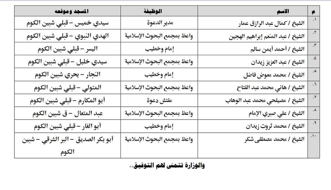 - من يترك منبره دون إذن كتابي من الإدارة أو المديرية التابع لها أو من رئيس القطاع الديني بالوزارة ويكون الحرمان من البدل في تلك الحالة لمدة 3 أشهر في المرة الأولى و6 أشهر في الثانية ولمدة عام إذا تكررت للمرة الثالثة فإن تكررت يحرم من البدل المشار إليه مطلقًا.