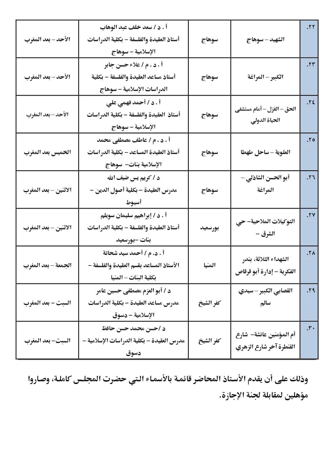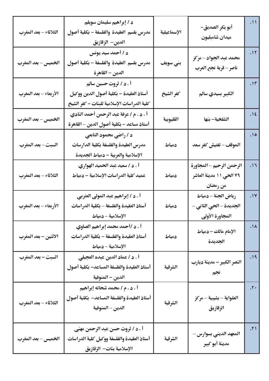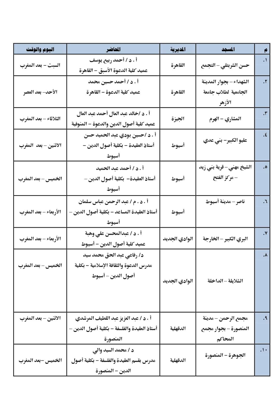 ويأتي ذلك في إطار الدور الدعوي والتثقيفي الذي تقوم به وزارة الأوقاف في نشر الفكر الوسطي المستنير وبناء الوعي الرشيد وذلك على النحو التالي: