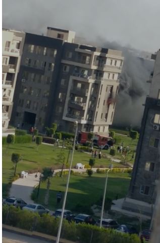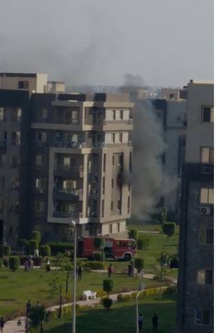 المباحث تستمع لشهود عيان واقعة حريق شقة داخل كمبوند دار مصر في الشيخ زايد