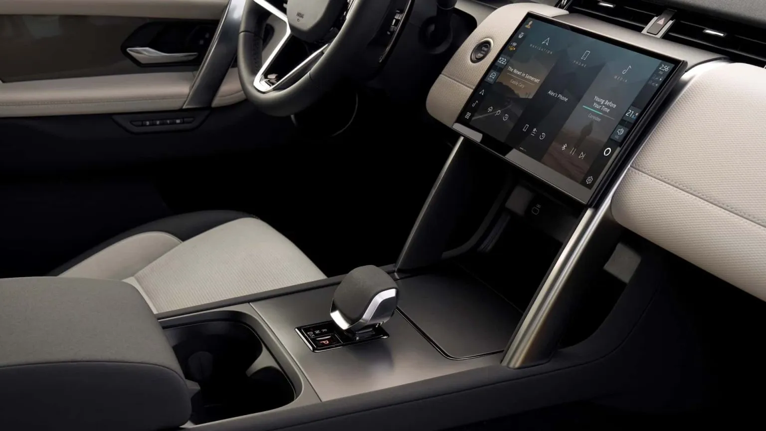سمحت الشاشة الجديدة المزودة بوظائف متزايدة ومحدد التروس المعاد تصميمه لشركة لاندروفر بإعادة تشكيل التخطيط بالكامل، وتركيب مساحة تخزين كبيرة في الكونسول الأمامي. تشمل الميزات القياسية الشحن اللاسلكي، ومجموعة الأدوات الرقمية، وأزرار تبديل السرعة المثبتة على عجلة القيادة.