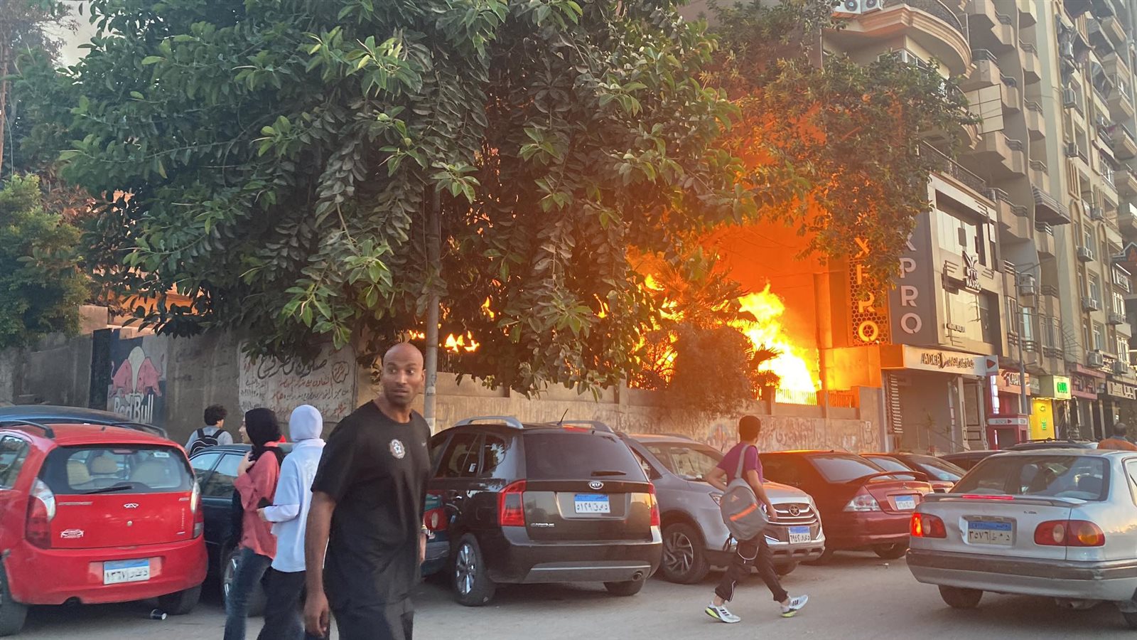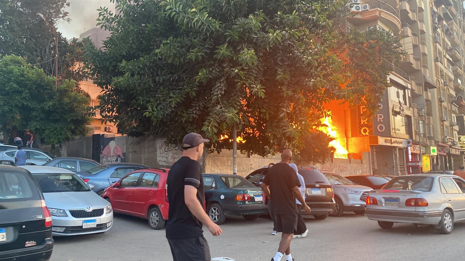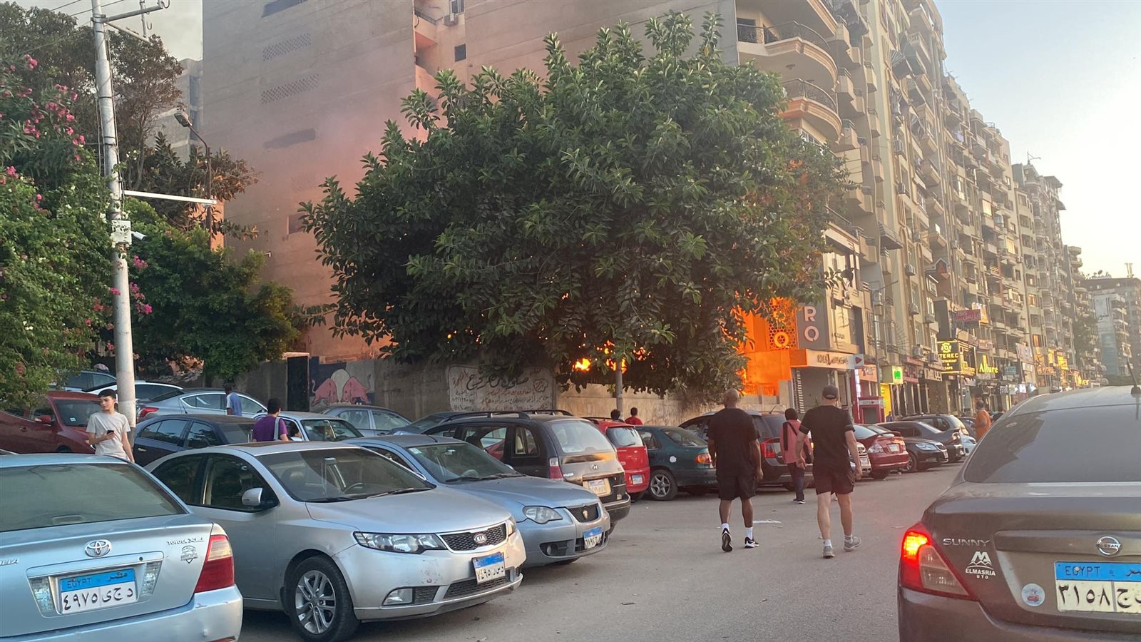 هرعت قوة أمنية من قسم أول المنصورة ورجال الحماية المدنية سيارات الإطفاء إلى موقع الحريق، أمام نادي الحوار بجوار أحد البنوك الكبيرة ناصية شارع الفيلل.
