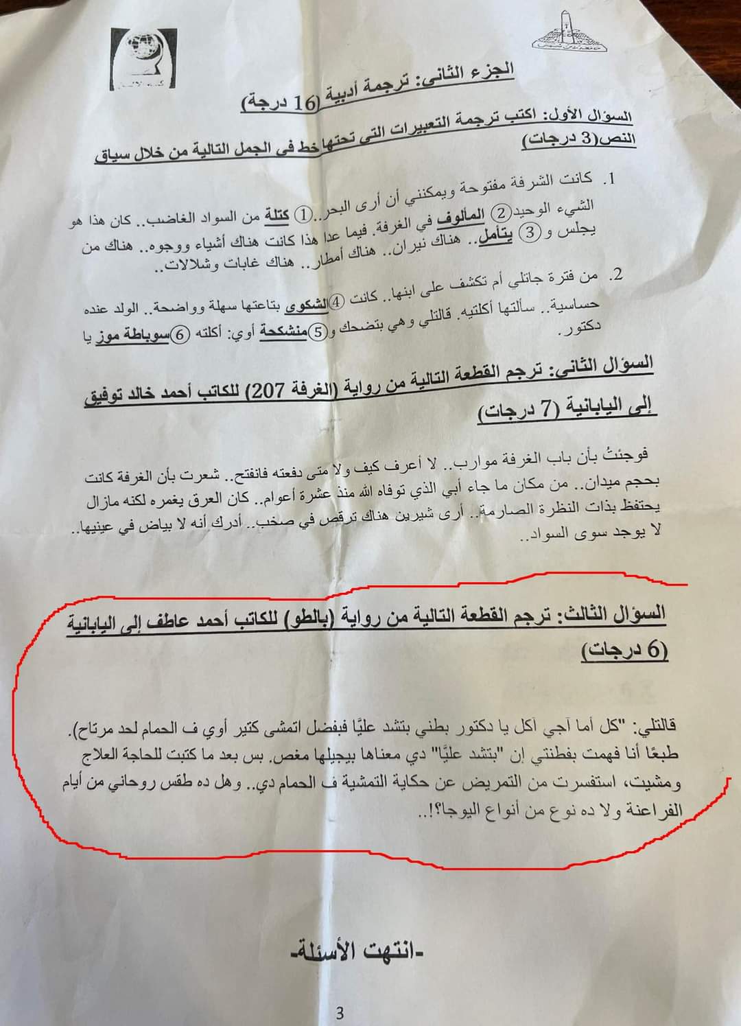 ونشر أحمد عاطف فريد صورة من الامتحان وأرفقها بتعليق عبر حسابه الشخصي بـ «فيس بوك»:" ترجم هذه القطعة من الأدب الطرشوخي".