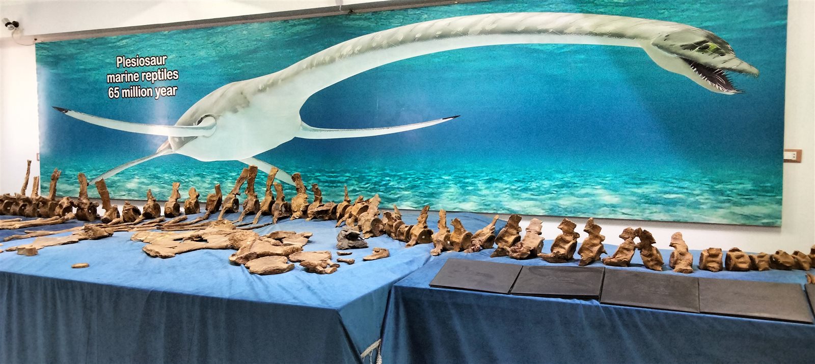 وأكد جبيلي أن بقايا عظام "البلزيوسوريا" المكتشفة مؤخرا غرب مدينة الداخلة تقع ضمن المجموعة الأولي طويلة العنق وصغيرة الجمجمة، فضلا عن استدارة أجسامها نسبيا، مشيرا إلى امتلاك هذه المجموعة من الزواحف علي أربعة زعانف قوية ورقبة طويلة تمكنها من السباحة، أما الذيل فليس له دور كبير في توجيه جسم الكائن لصغر حجمه، لافتا إلى إجراء بعض الدراسات التشريحية، والتى أثبتت أن محاجر العينين كانت كبيرة في "البليسيوزور" لضمان مستوى رؤيته أثناء الصيد، مثمنًا جهود اللجنة العلمية التى استغرقت ٧ أيام للوقوف على ماهية الكائن فى سجل عامر بالإنجازات على صعيد الاكتشافات المتتالية لمركز الحفريات الفقارية بالجامعة.