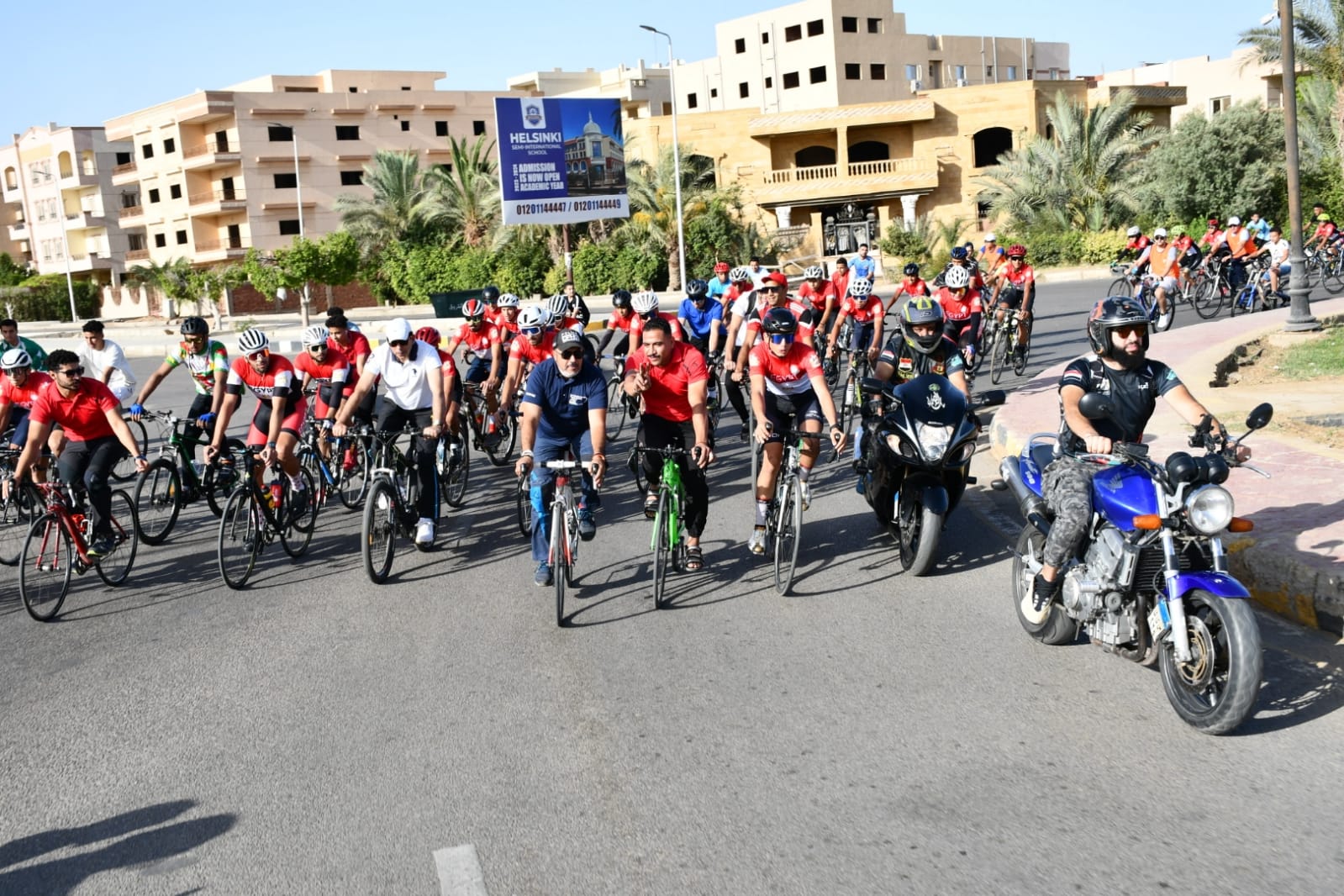 صبحي يفتتح الملعب القانوني بنادي جرين هيلز الشروق ويقود ماراثون للدراجات الهوائية