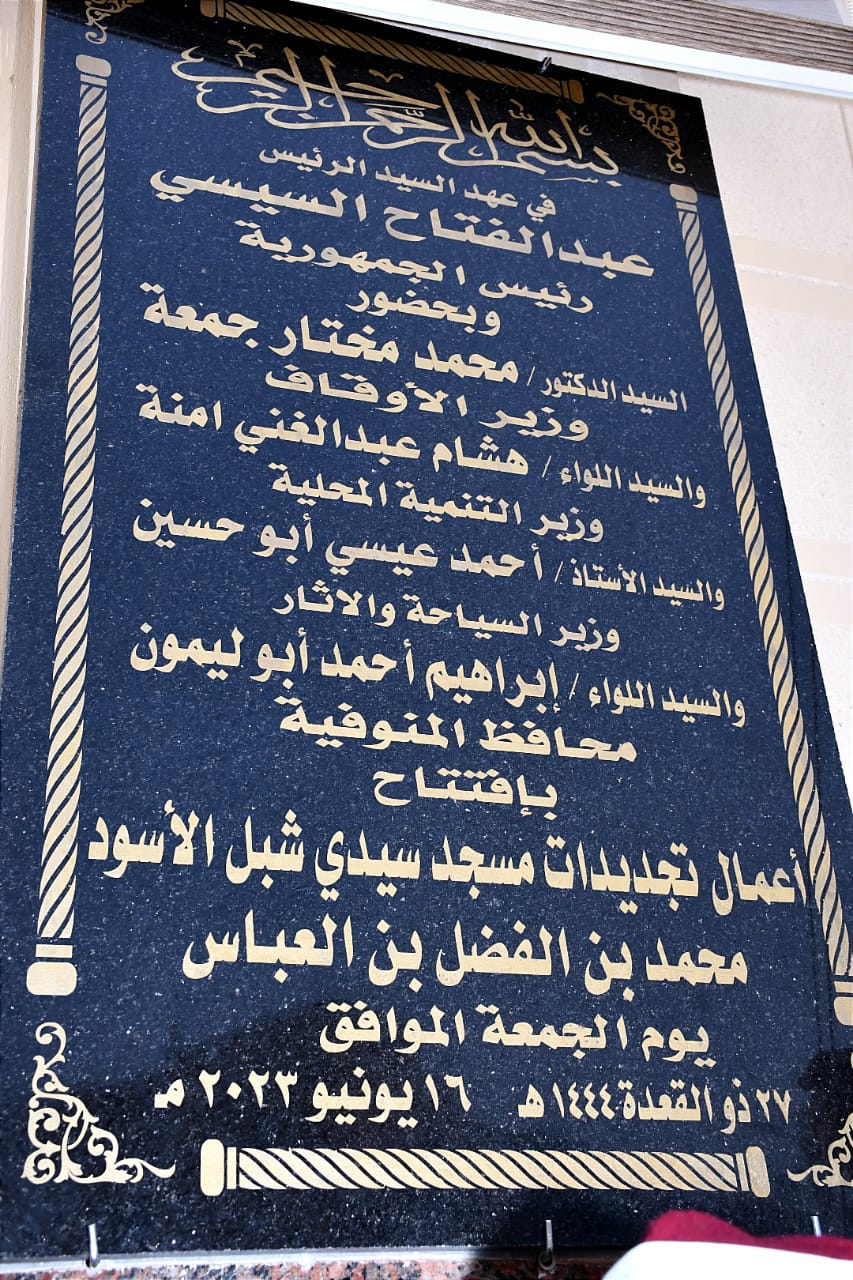 افتتح الدكتور محمد مختار جمعة وزير الأوقاف واللواء إبراهيم أبو ليمون محافظ المنوفية مسجد سيدي شبل الأسود بمدينة الشهداء بمحافظة المنوفية بعد صيانته وتطويره اليوم الجمعة 16 / 6 / 2023م بتكلفة تسعة ملايين جنيه من موازنة وزارة الأوقاف.