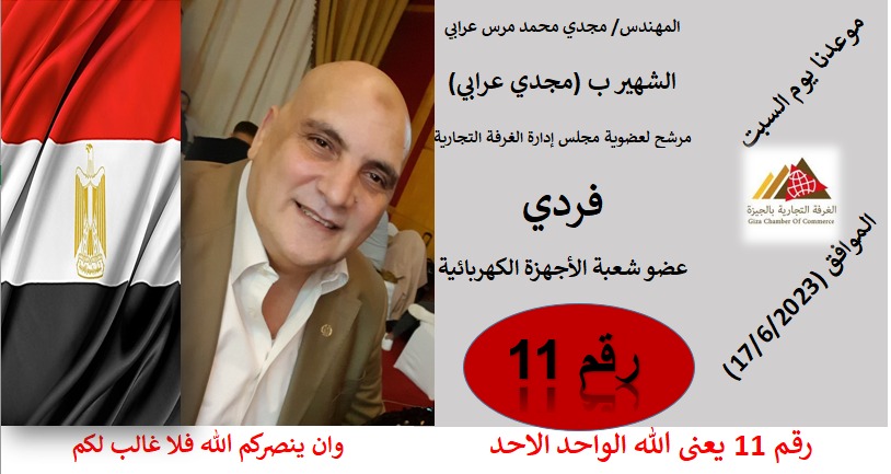 ويخوض مجدى محمد مرسى محمد وشهرته مجدى عرابى عضو مجلس إدارة بالغرفة وشعبة الأجهزة المنزلية، الانتخابات مرشح فردي خارج القائمتين.