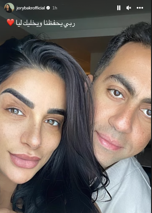 ونشرت جوري بكر صورة تجمعها بزوجها عبر خاصية الاستوري، وعلقت عليها قائلة: "ربي يحفظنا ويخليك ليا".