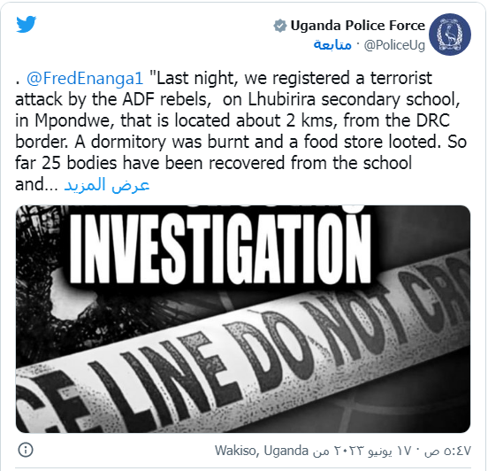 مقتل 25 شخصا في هجوم إرهابي على مدرسة ثانوية بأوغندا