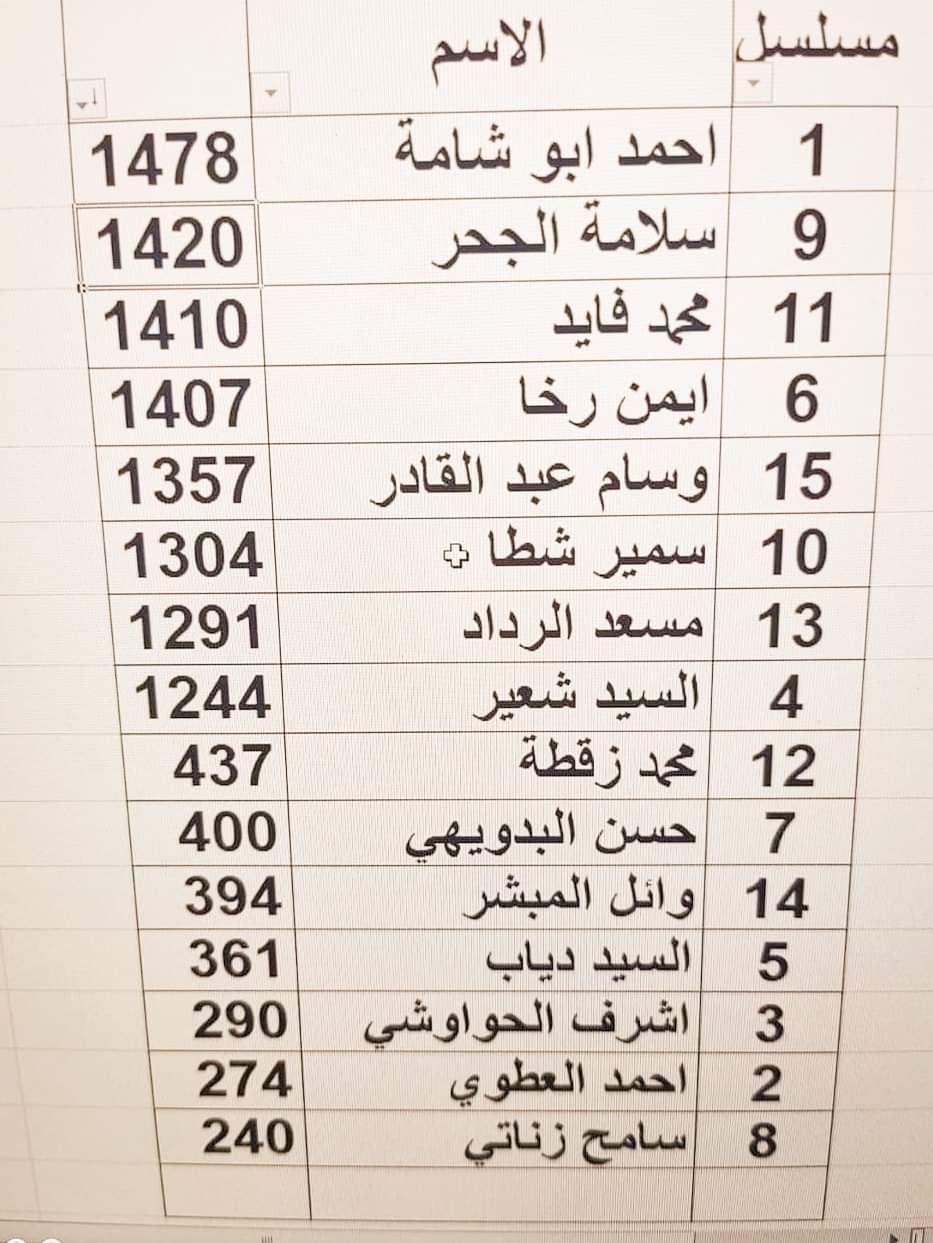 وجاءت قائمة محمد عبد اللطيف فايد، بالنجاح في الانتخابات، وجاءت النتيجة النهائية لحصول المرشح أحمد أبو شامة على 1478 وسلامة الجحر على 1420، ومحمد فايد على 1410، وأيمن رخا 1407 ووسام عبد القادر 1357. وأيضا سمير شطا بعدد أصوات 1304، ومسعد الرداد 1291، والسيد شعير 1244.