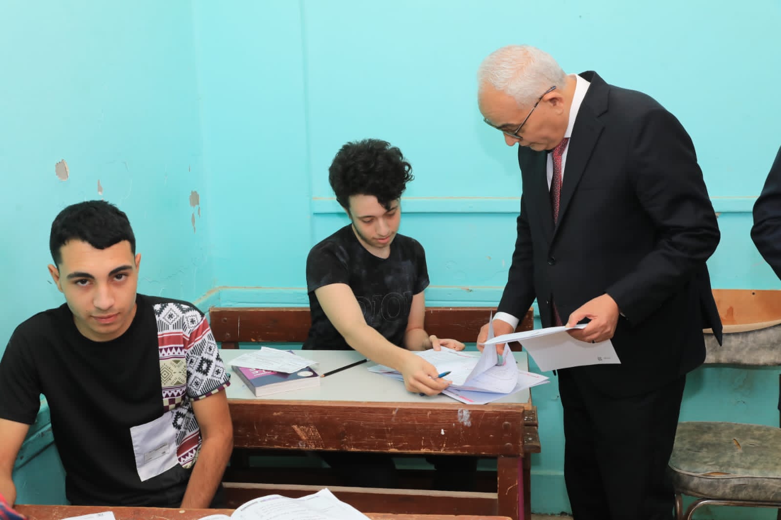 واطمأن الوزير على أداء الطلاب فى الامتحان، والتأكد من الحل فى ورقة اجابة البابل شيت، وورقة إجابة الأسئلة المقالية، كما اطمأن من الطلاب على مستوى الامتحان ووضوح الاسئلة، مؤكدا على الملاحظين الالتزام بالتعليمات الخاصة بالامتحانات، وتوفير المناخ الملائم للطلاب لتأدية الامتحان في جو مناسب وتوفير الطمأنينة والراحة النفسية.